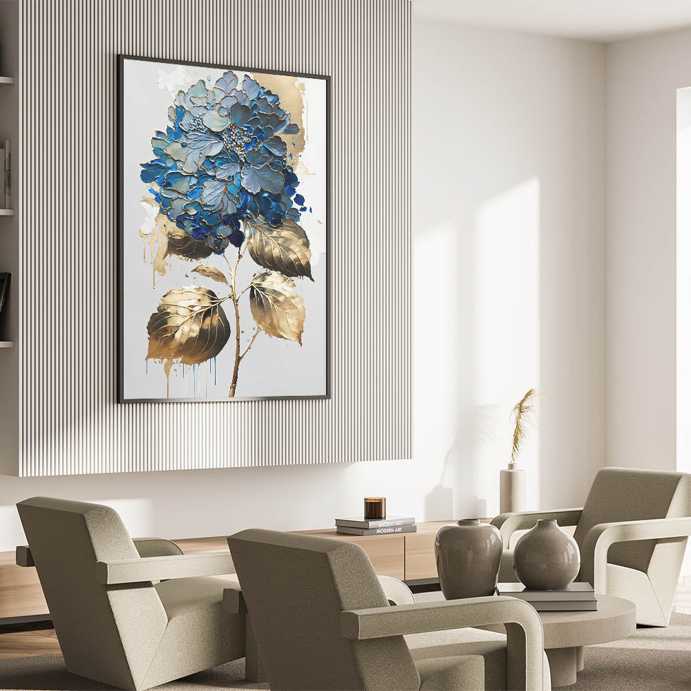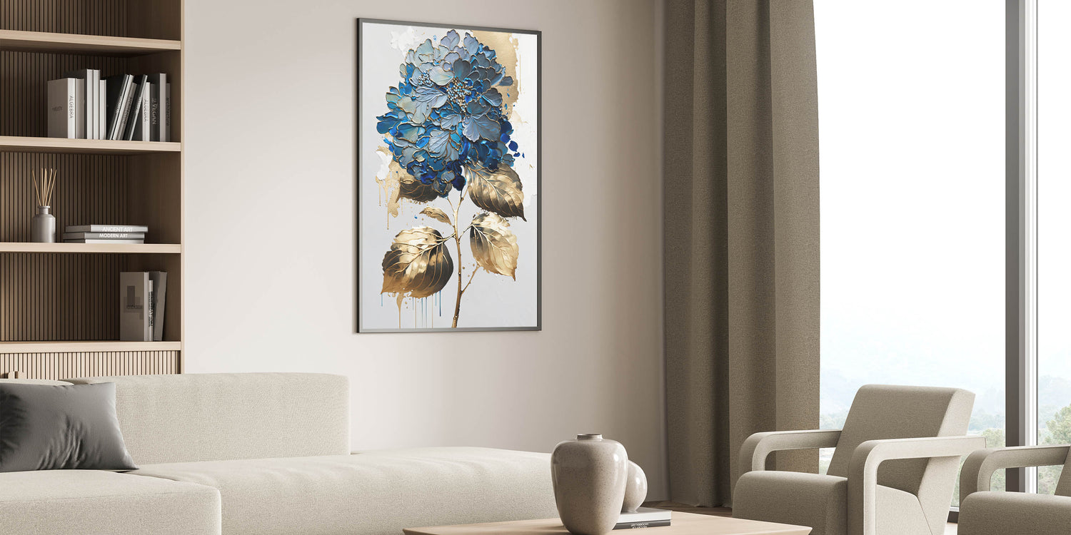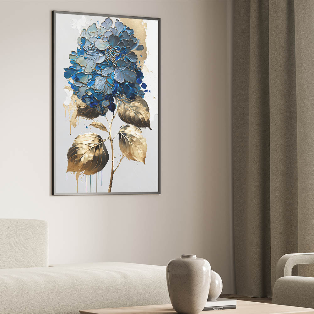 Introduce a touch of elegance to your space with our "Modern Floral Abstract Wall Art," a stunning piece that blends blue and gold hues in an intricate botanical design. This artwork captures the essence of contemporary floral beauty, making it a perfect addition to any modern decor.