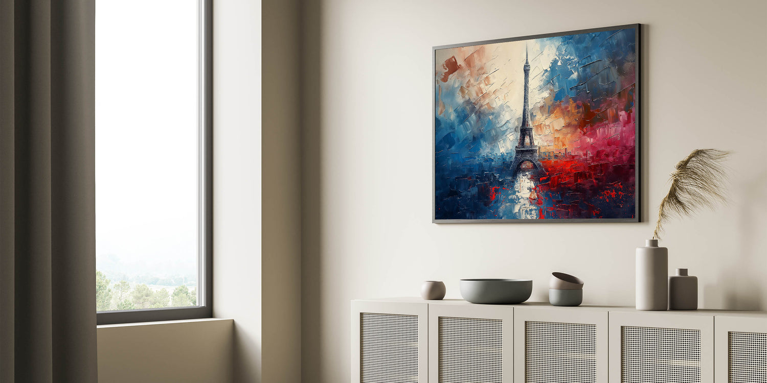 - Ideal for living rooms, bedrooms, or office spaces, combining iconic Parisian imagery with modern art.
