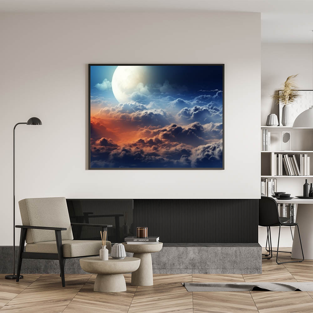Perfect for bedrooms, living rooms, or any space where you want to create a calming and mystical atmosphere, this moonlit cloudscape wall art is sure to inspire and delight.