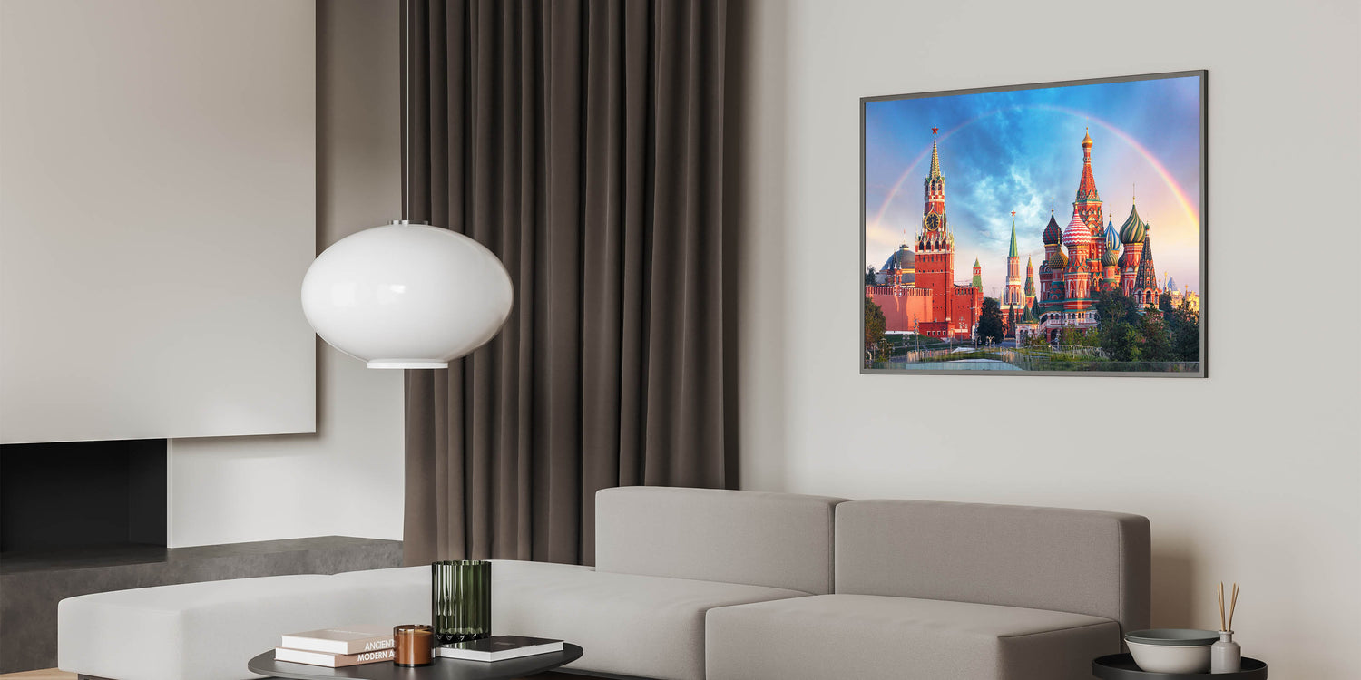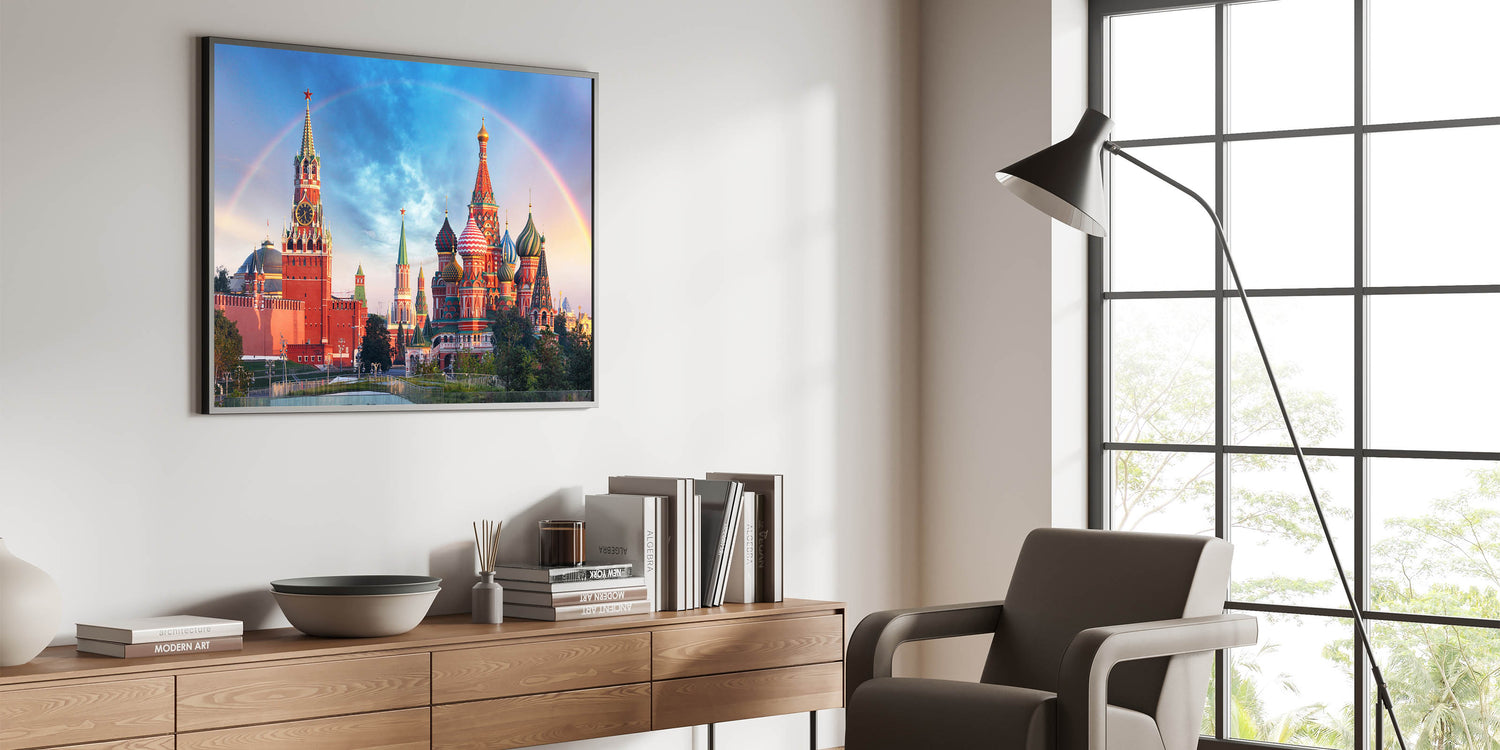 - High-quality Moscow framed art available in canvas, acrylic glass, and framed print options.