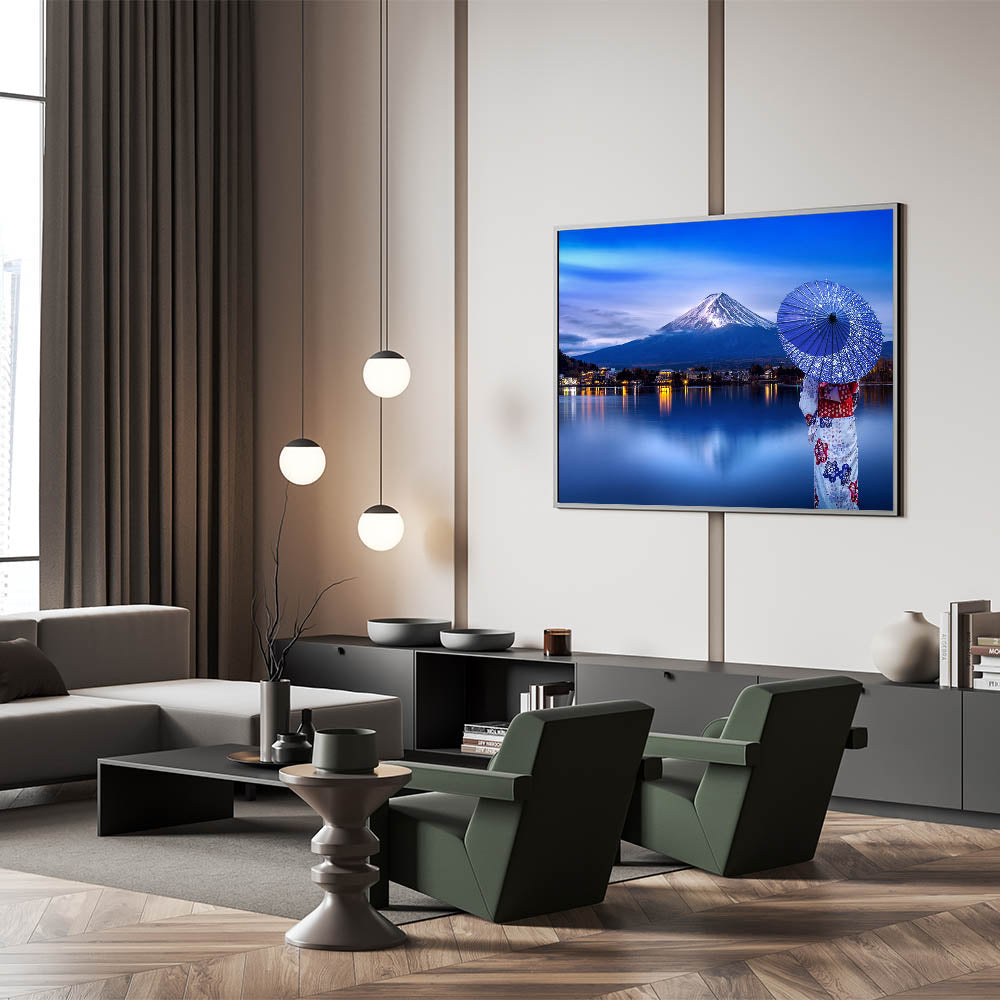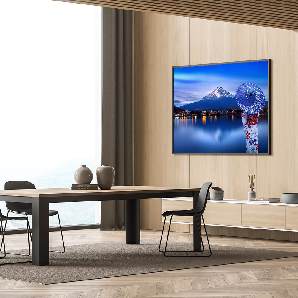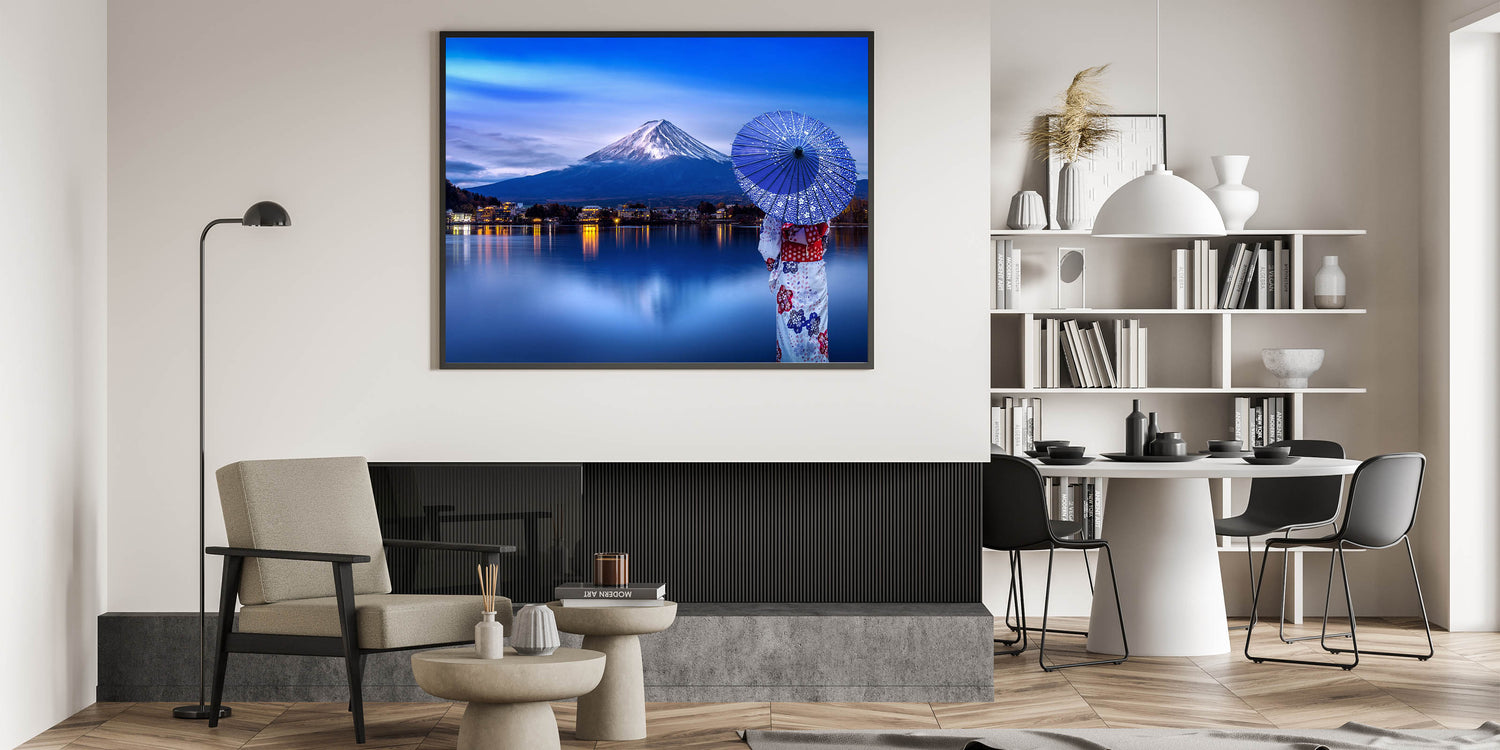 - High-quality Mount Fuji landscape canvas print available in stretched canvas, framed canvas, and acrylic glass.