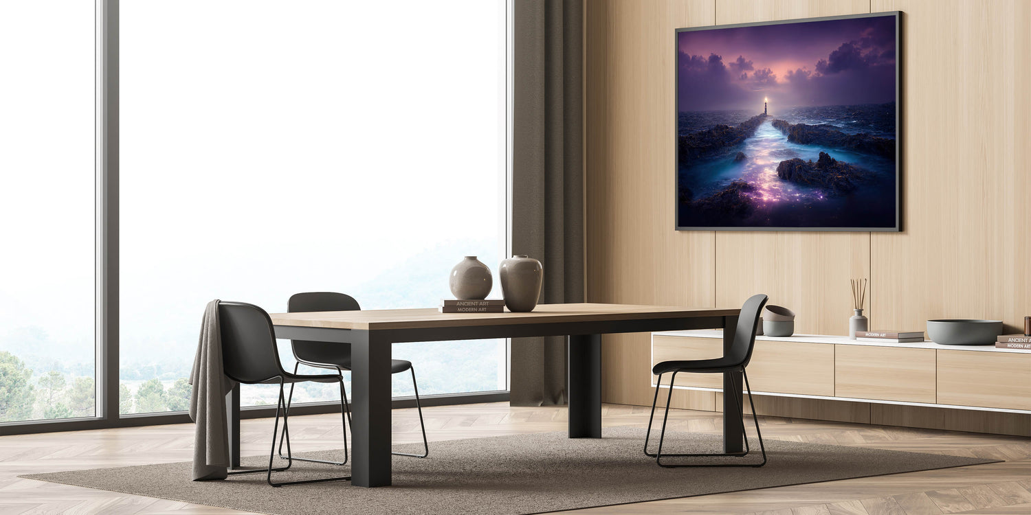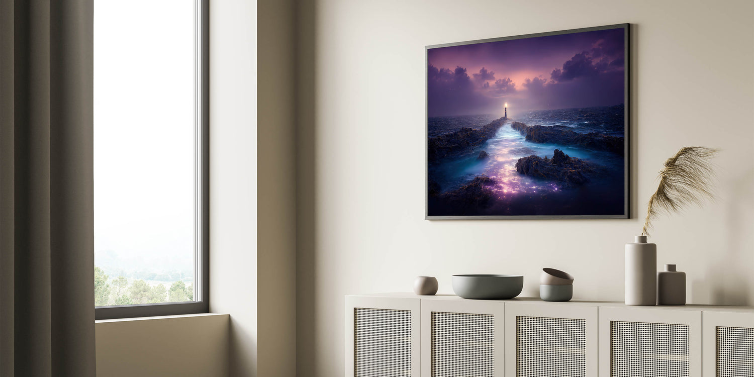 - High-Resolution Print: Captures the deep purples, blues, and subtle light, ensuring a stunning and immersive visual experience.
