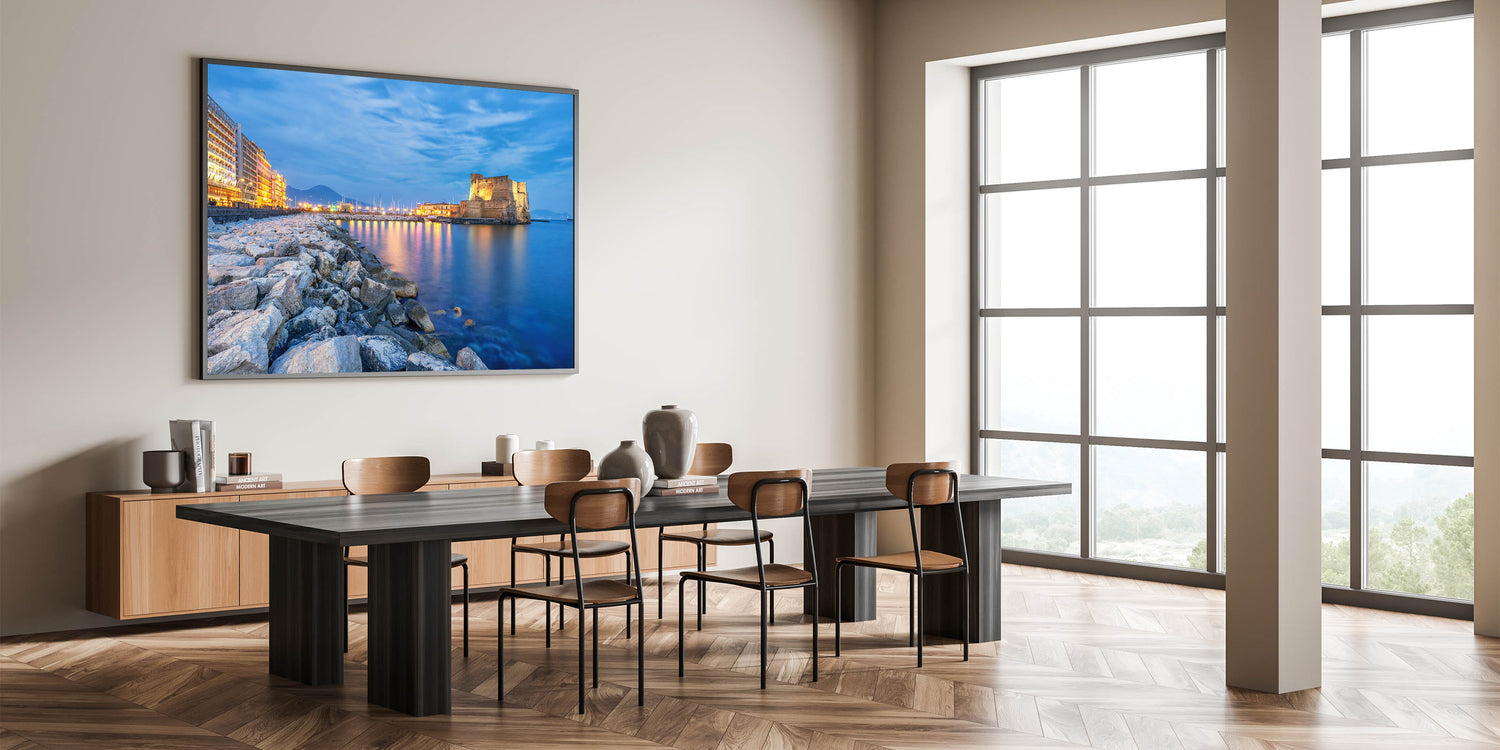 Add this Stunning Naples Cityscape Print to your collection today and enjoy the timeless beauty of Naples at night, adding sophistication and calm to any room.