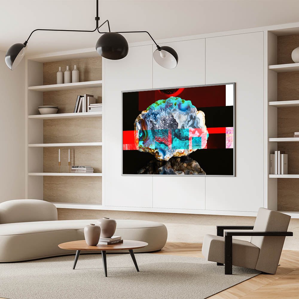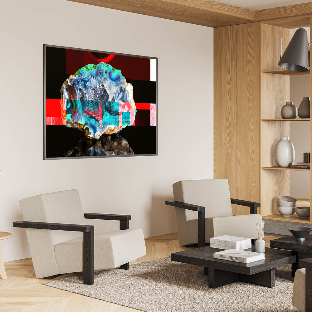 Ideal for living rooms, bedrooms, or offices, this geode crystal artwork brings a touch of natural elegance and vibrancy into your space. Whether framed or printed on canvas, this piece enhances your decor with its intricate textures and organic beauty.