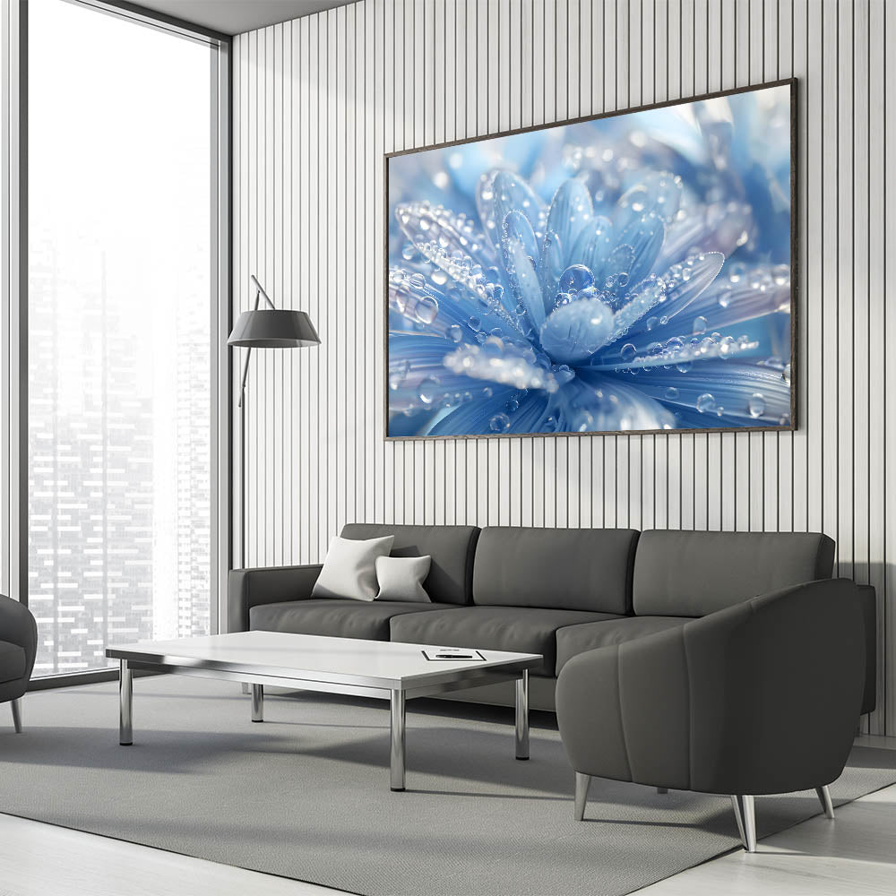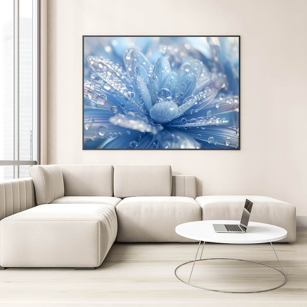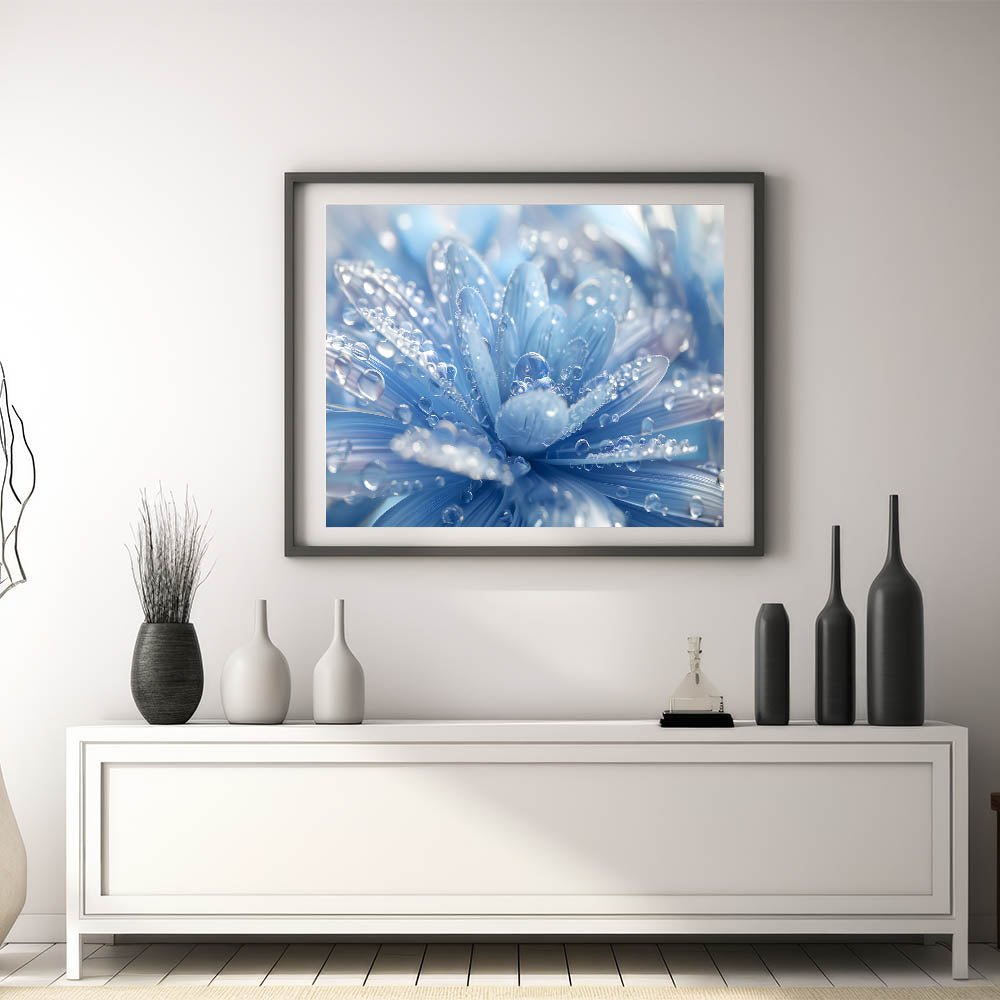 Infuse your space with the serene beauty of this close-up water-inspired wall art. Featuring delicate dewdrops resting on the soft blue petals of a flower, this artwork captures the elegance of nature in exquisite detail. The calming tones and intricate composition make this piece perfect for creating a peaceful and soothing ambiance in any room.