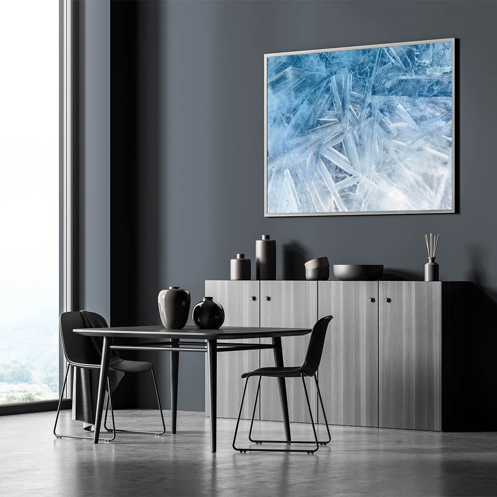 This artistic frost imagery brings out subtle ice textures, making it an ideal addition to any modern or minimalist decor. Add a touch of frozen beauty to your space with this stunning representation of nature’s winter craftsmanship.
