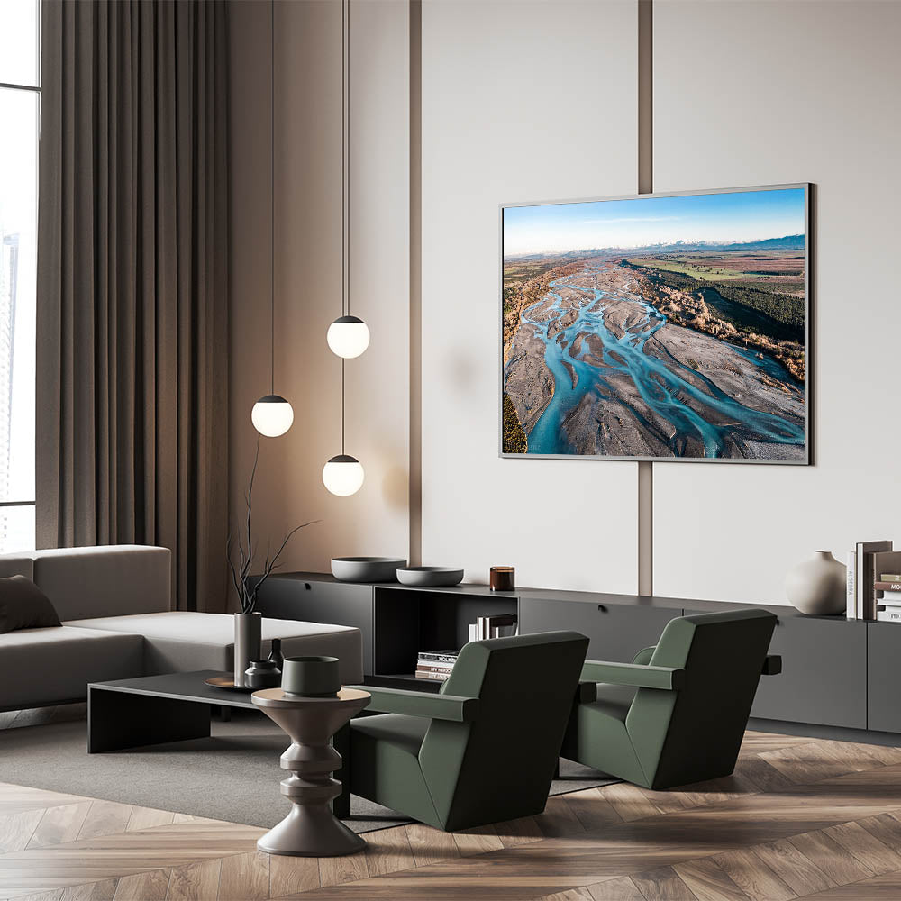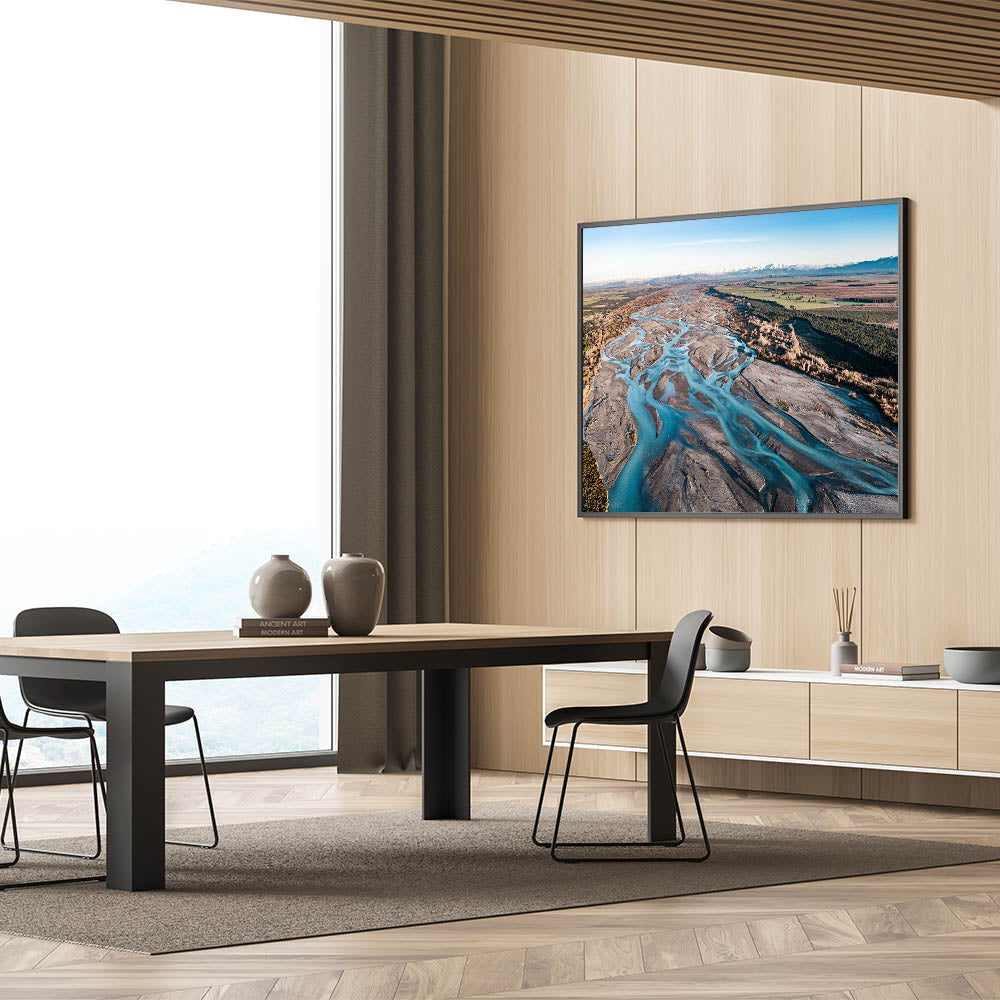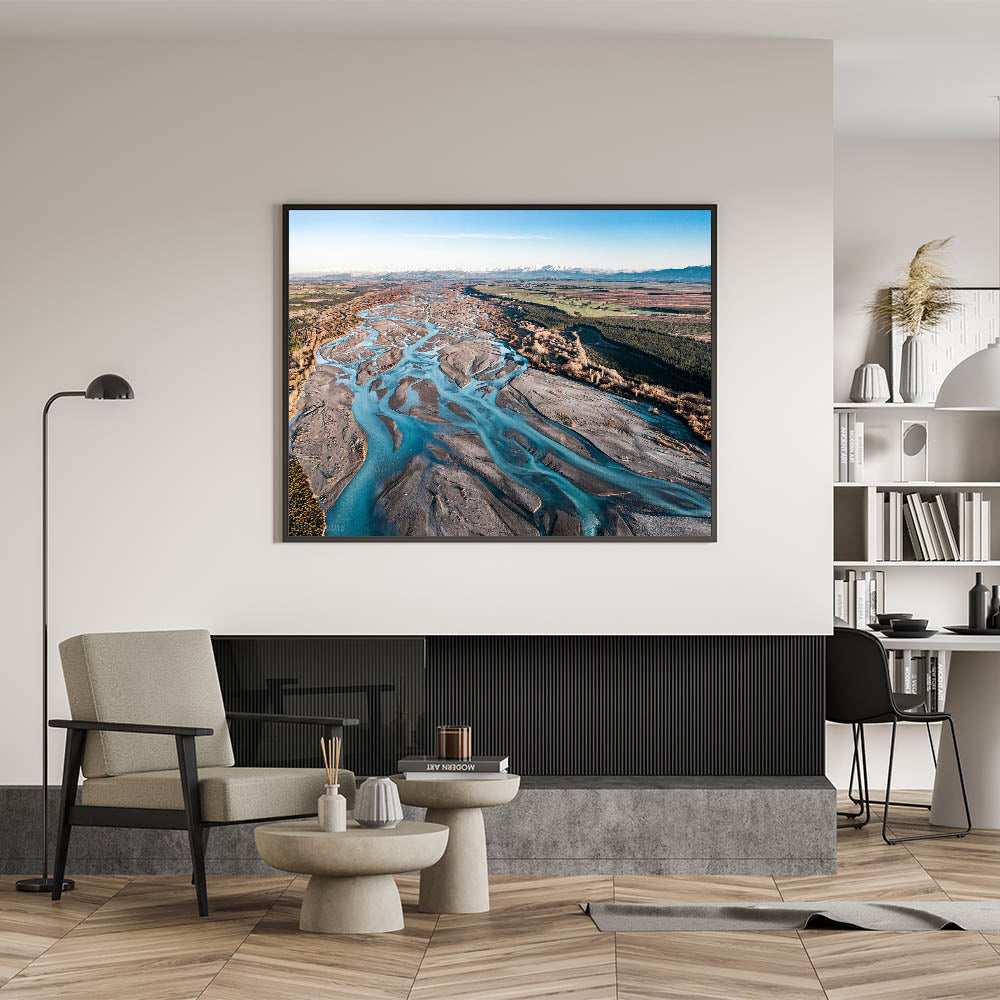 Embrace the natural beauty of New Zealand’s Canterbury region with this stunning Canterbury Landscape Art. This breathtaking New Zealand Scenery Print features a sprawling riverbed winding through the rugged terrain, with vibrant blue waters cutting through the landscape. Perfect for nature lovers and travel enthusiasts, this artwork captures the serene beauty of Canterbury’s diverse natural landscapes.