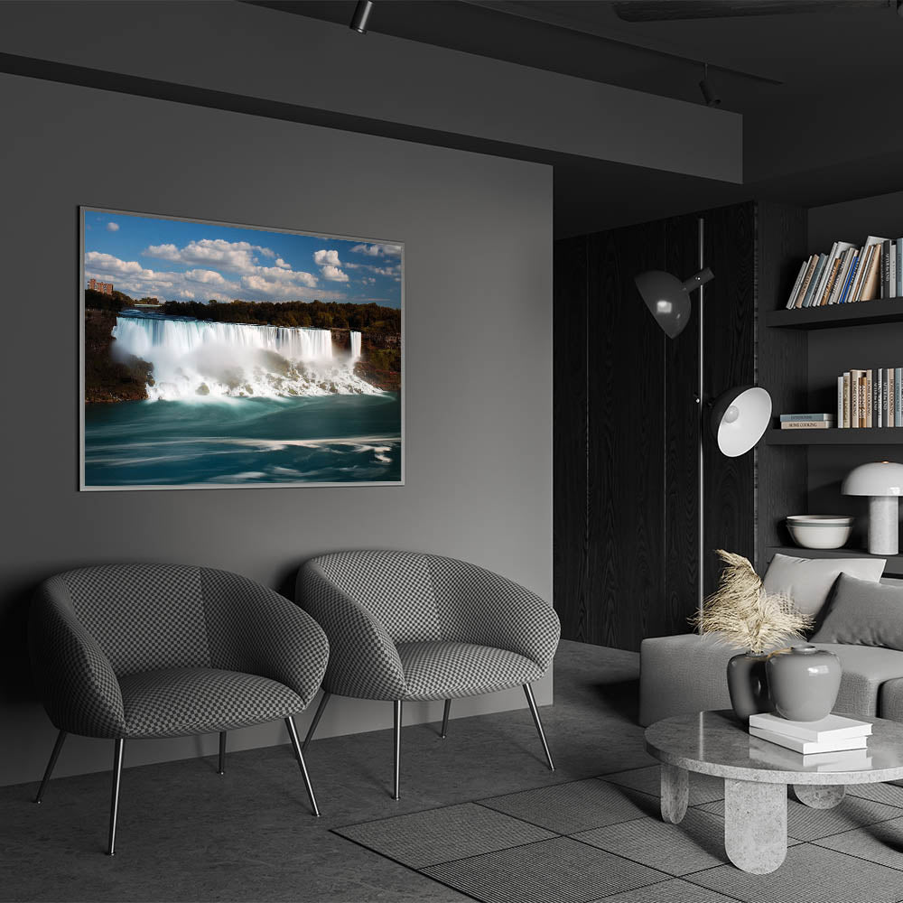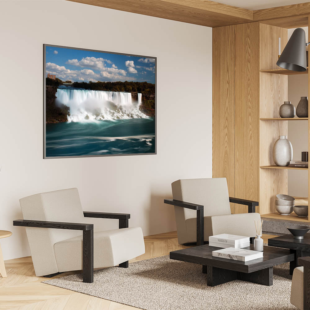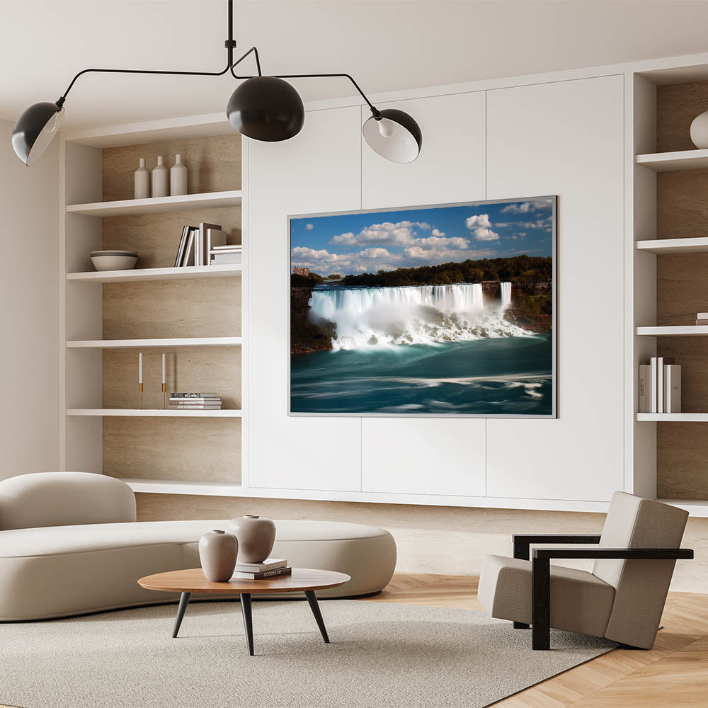 Enhance your living space with this stunning Niagara Falls artwork, capturing the beauty and serenity of one of nature's most iconic landmarks. Perfect for any room, this high-quality Niagara Falls print showcases the breathtaking power and tranquility of the falls with vibrant blues and soft misty tones.