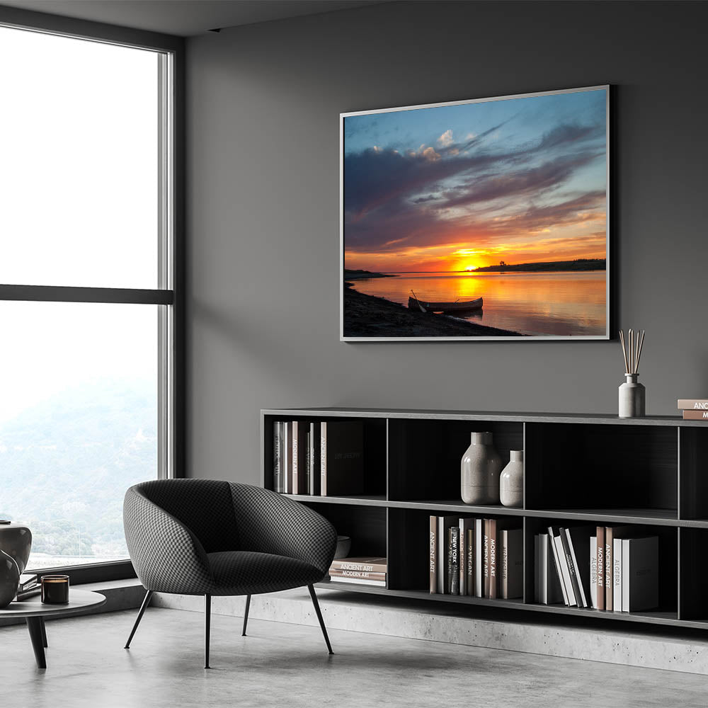 Bring the calming beauty of North Dakota’s stunning sunsets into your space with this captivating wall art featuring a peaceful canoe scene at dusk. This artwork, highlighting the vibrant hues of the setting sun reflecting on tranquil waters, is the perfect addition to any home or office. Ideal for nature enthusiasts, this North Dakota scenic art beautifully captures the essence of the state’s serene landscapes. Available in various high-quality formats such as canvas and framed prints, this piece will elevate any room with its peaceful and vibrant energy.