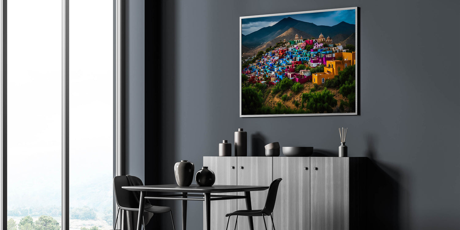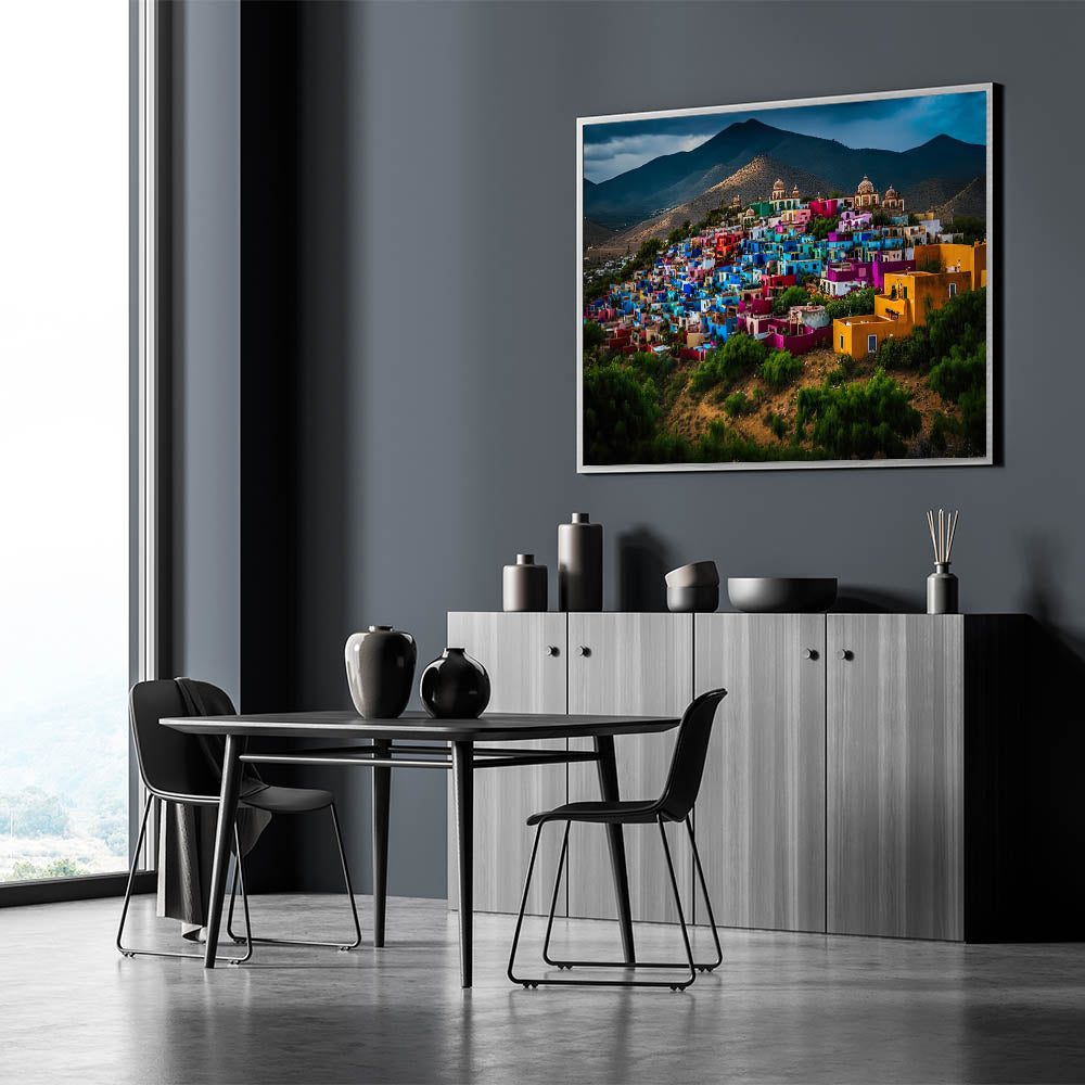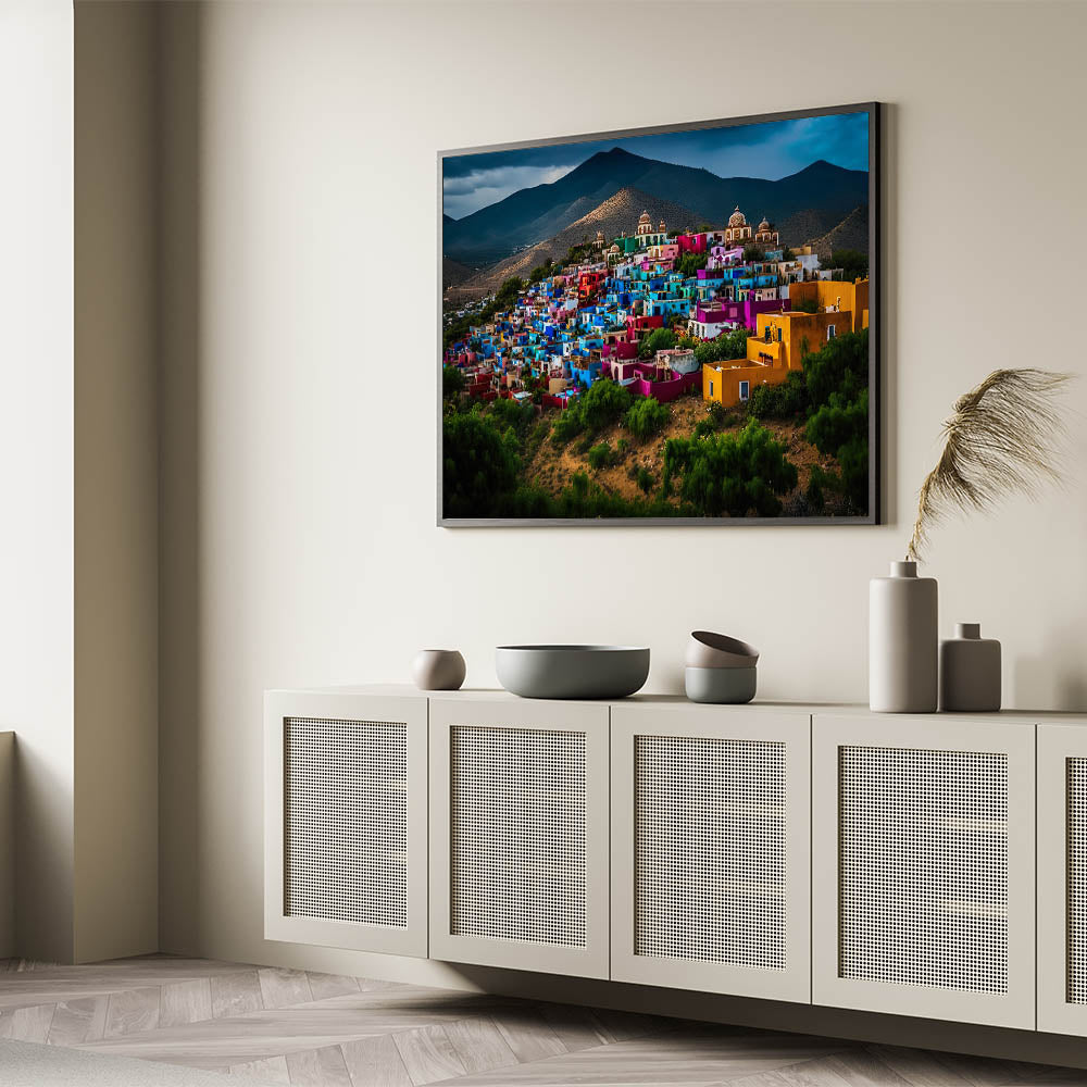 Oaxaca Wall Art – Colorful Mexican Hillside Village with Vibrant Homes