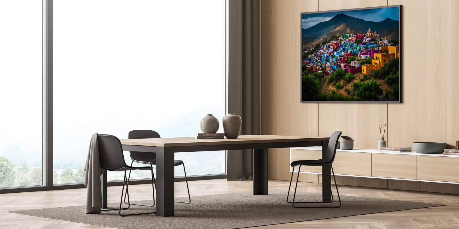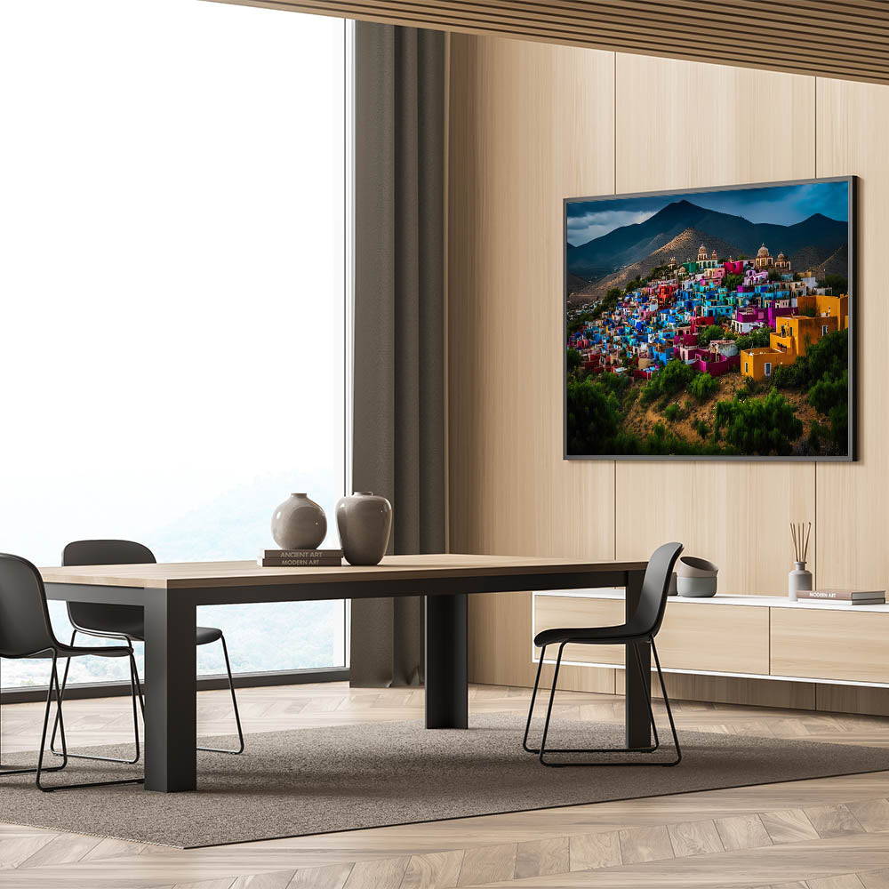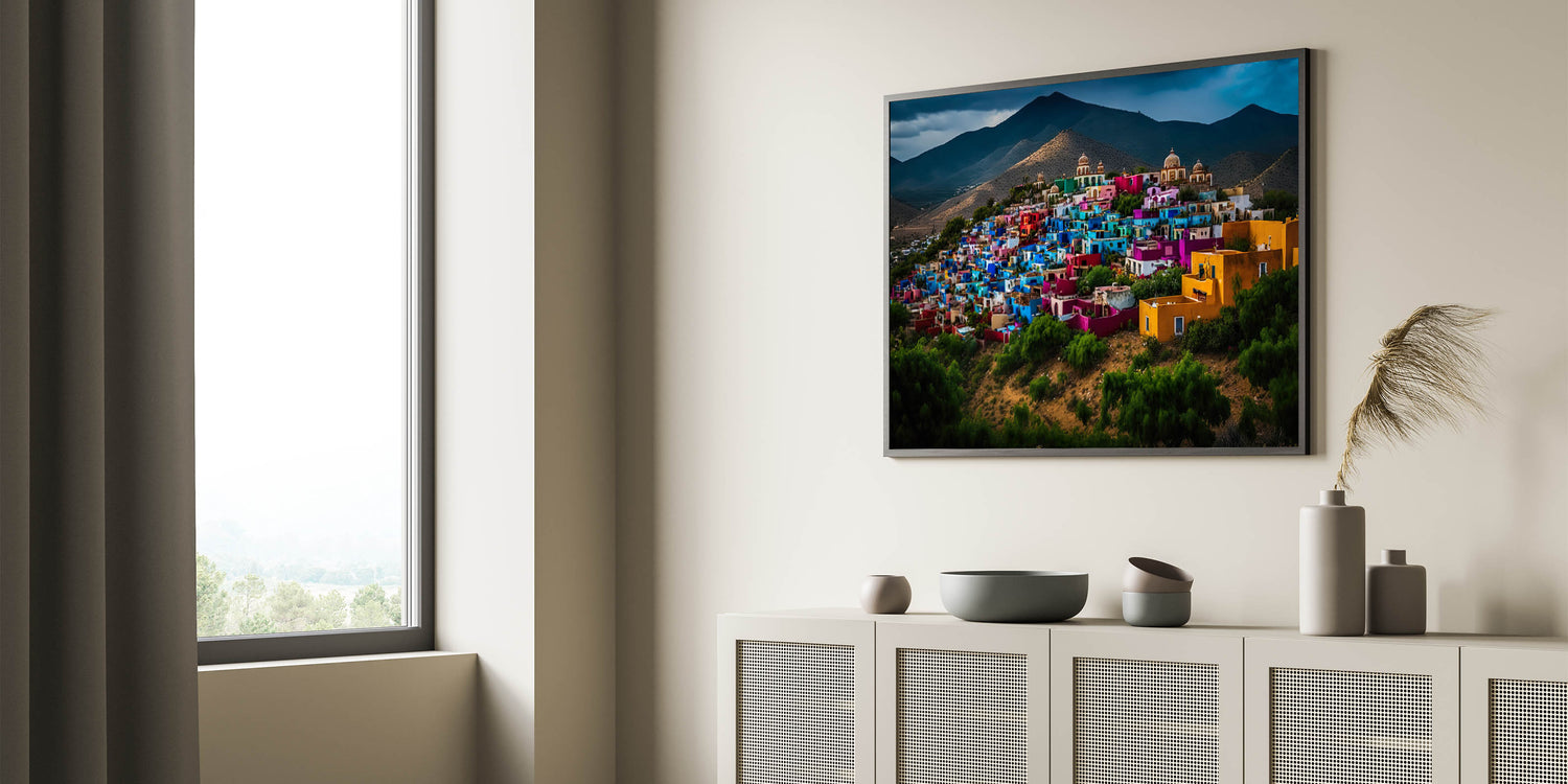 Oaxaca Wall Art – Colorful Mexican Hillside Village with Vibrant Homes