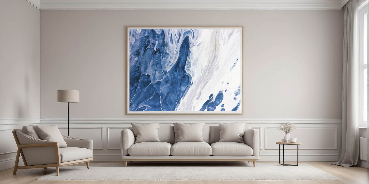 Immerse yourself in the calming waves of our "Ocean-Inspired Abstract Strokes." This fluid canvas art captures the essence of the ocean with its mesmerizing blend of deep blues and soft whites. The swirling patterns evoke the gentle motion of the sea, creating a tranquil and soothing atmosphere in any space. Perfect for those who seek a connection to nature or a touch of coastal elegance in their decor, this piece is both calming and visually captivating.