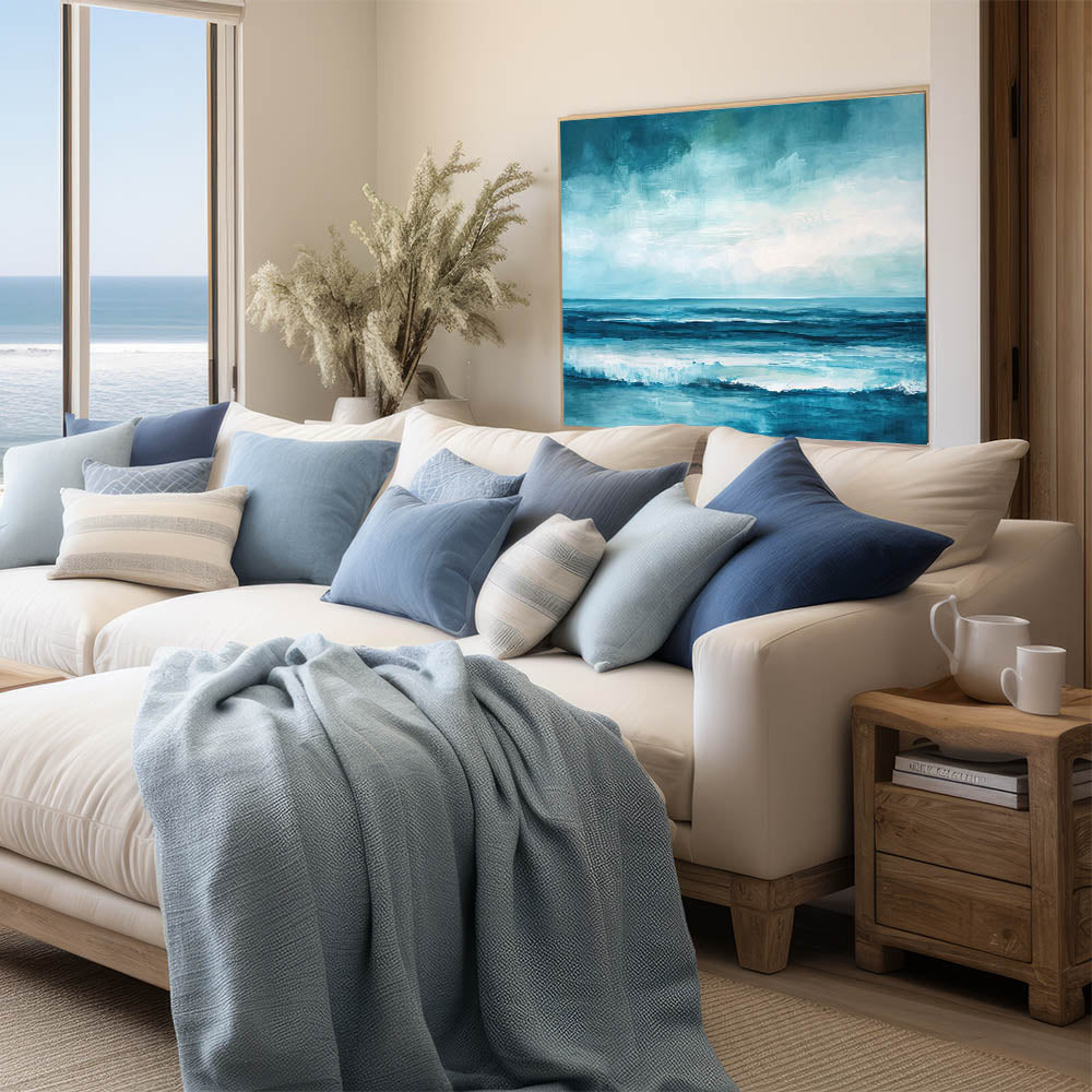 Bring the calming beauty of the ocean into your home with this stunning piece of coastal wall art. Featuring tranquil waves and soft blue hues, this artwork perfectly captures the serene essence of seaside living. Ideal for beach-inspired homes or nautical-themed spaces, this oceanic wall decor will effortlessly transform your living room, bedroom, or any space that craves a coastal touch.