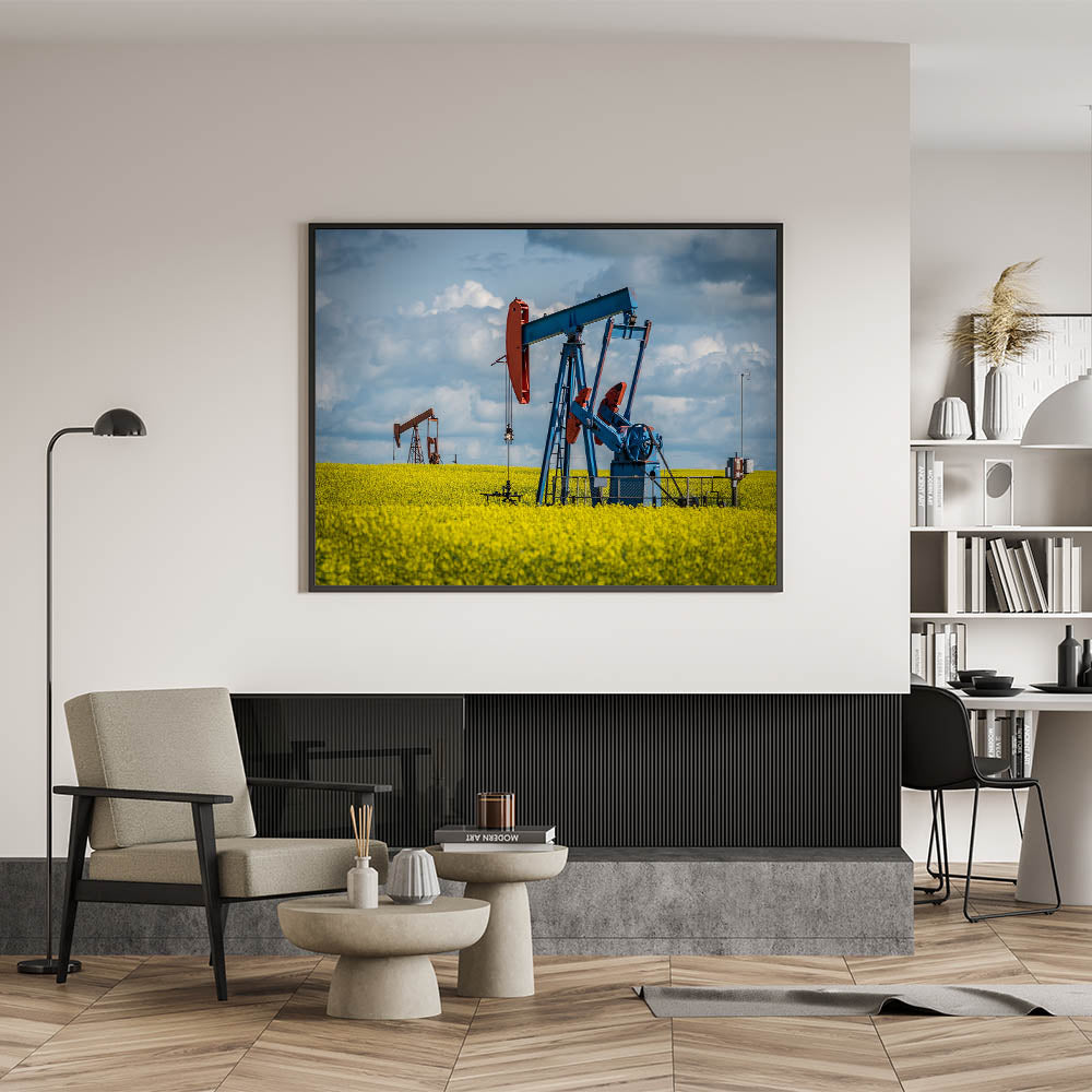 Oil Pumpjacks in Canola Field – Scenic Saskatchewan Landscape Wall Art