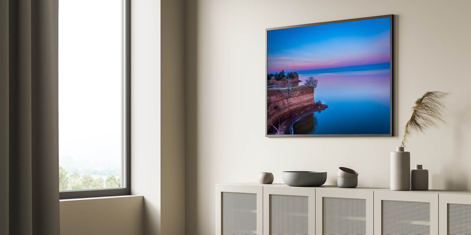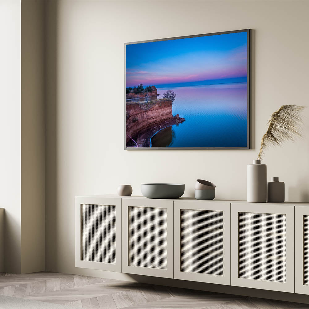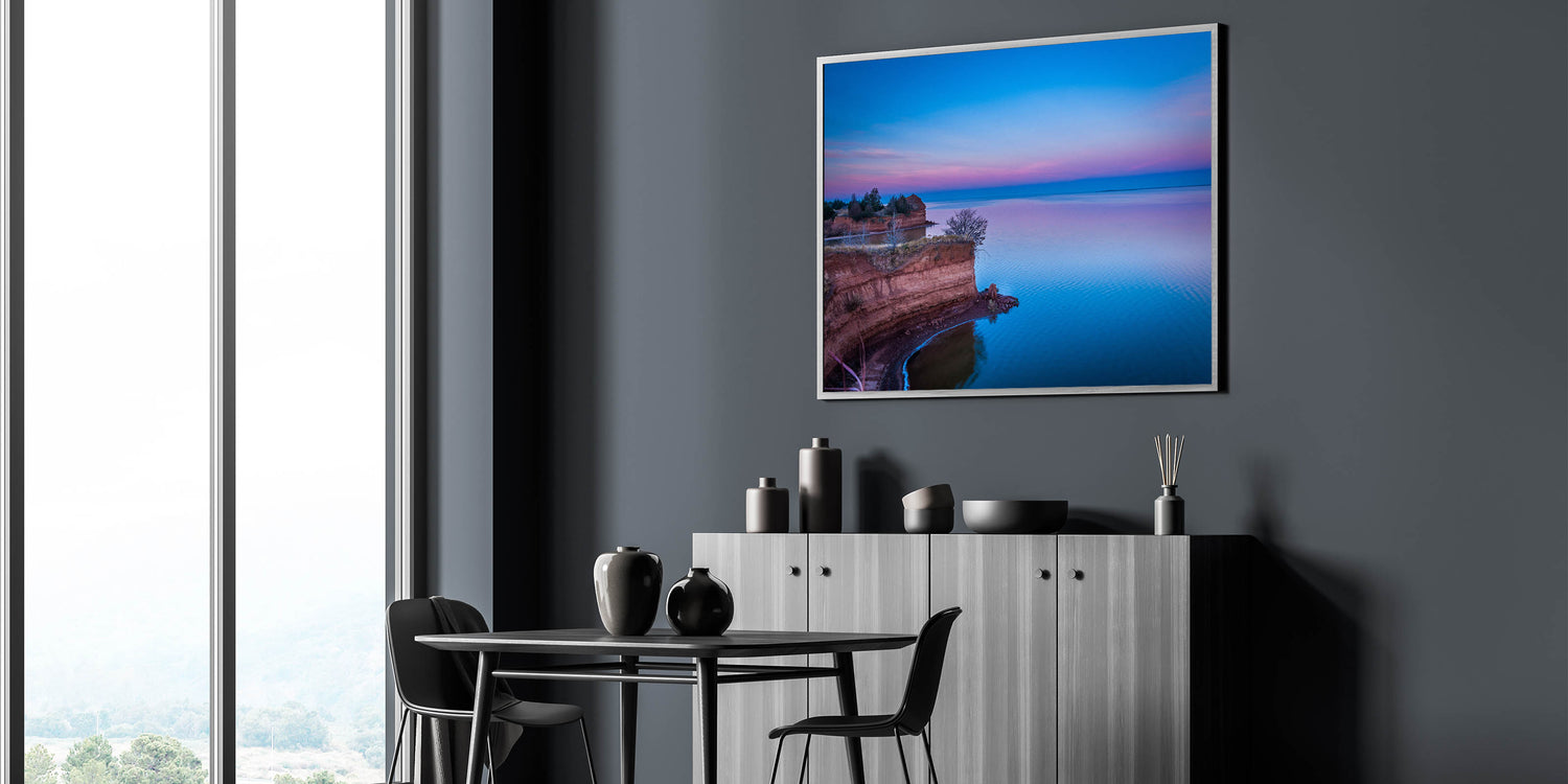 Experience the peaceful beauty of Oklahoma’s lakeside scenery with this stunning photography art. Captured at sunset, this breathtaking scene features serene waters reflecting soft hues of blue, pink, and purple, creating a tranquil atmosphere that evokes calm and serenity. Perfect for those who love Oklahoma nature, this piece will bring a sense of calm and beauty into any room. Available in formats such as stretched canvas, framed prints, and acrylic glass, this Oklahoma photography art is perfect for both home and office spaces.