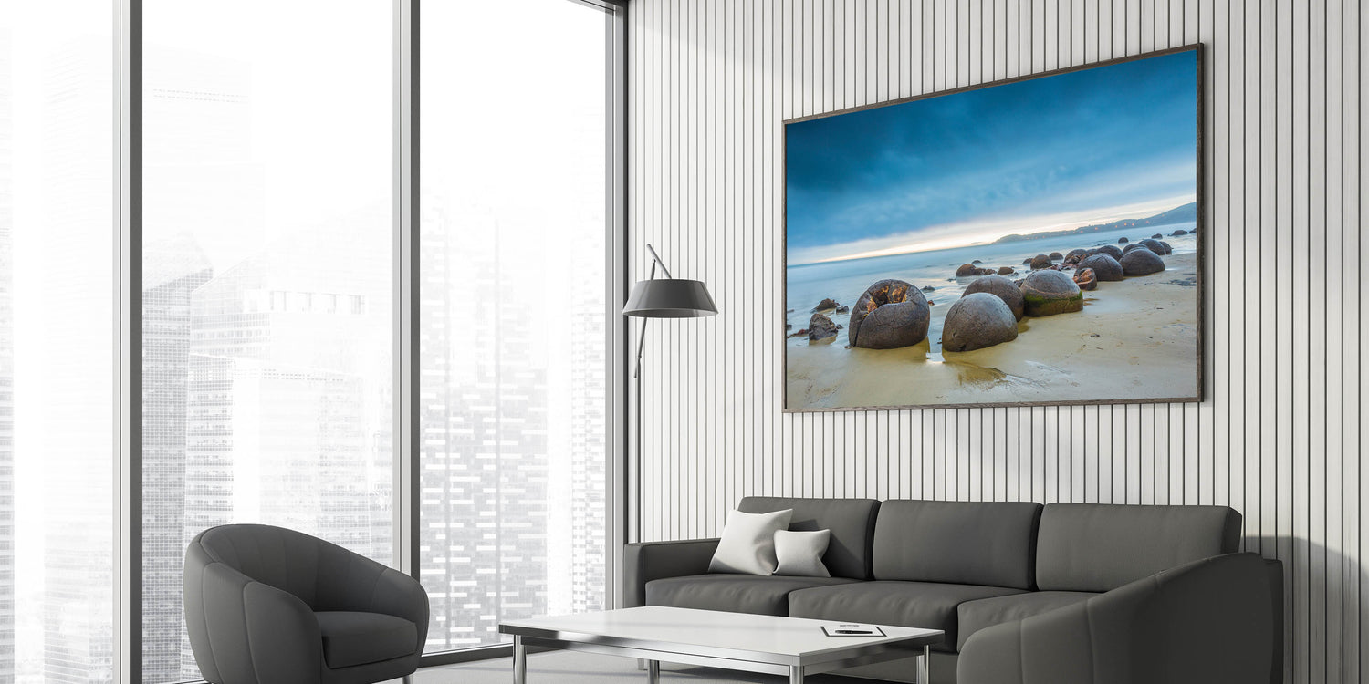 This piece is perfect for anyone seeking Otago art prints or those who appreciate coastal photography. Featuring the iconic Moeraki Boulders, this artwork brings the serene and timeless beauty of New Zealand's landscape to your home. Elevate your decor with the calming and mysterious essence of the Otago Peninsula.
