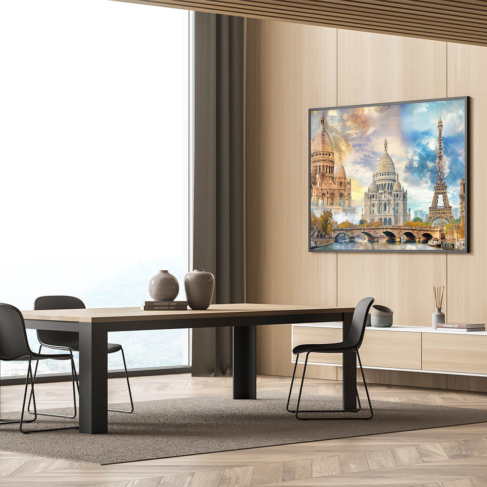 Immerse yourself in the romance and beauty of Paris with this captivating artwork featuring the iconic Eiffel Tower and Sacré-Cœur. This beautiful Paris canvas print offers a stunning combination of Parisian architecture and scenic views, perfect for anyone who loves French wall decor. With soft pastel tones and detailed imagery, this high-quality Paris artwork will add a sophisticated touch to any room.