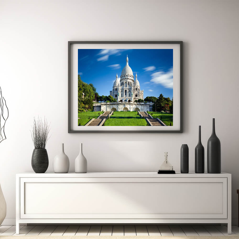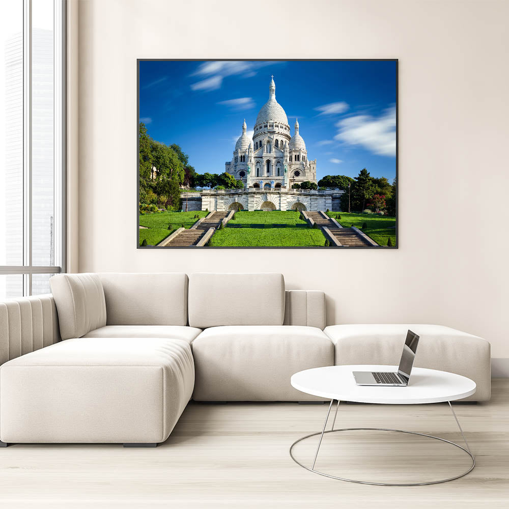 Elevate your living space with this striking beautiful Paris artwork featuring the magnificent Sacré-Cœur Basilica. Set against a vibrant blue sky, this captivating image captures the serene beauty of this iconic Parisian landmark. Whether you're looking to bring high-quality Paris prints into your home or office, this canvas showcases the grandeur and elegance of French architecture at its finest.