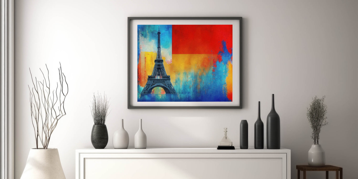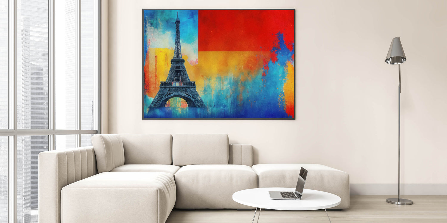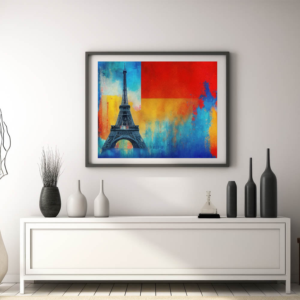 Brighten up your space with this vibrant and colorful depiction of the Eiffel Tower. This striking Paris canvas print combines bold hues of red, yellow, and blue, making it a unique addition to any art collection. The iconic Parisian landmark is set against an abstract, colorful background, creating a modern twist on classic French decor. Perfect for those looking to add an artistic, high-quality Paris print to their home or office.