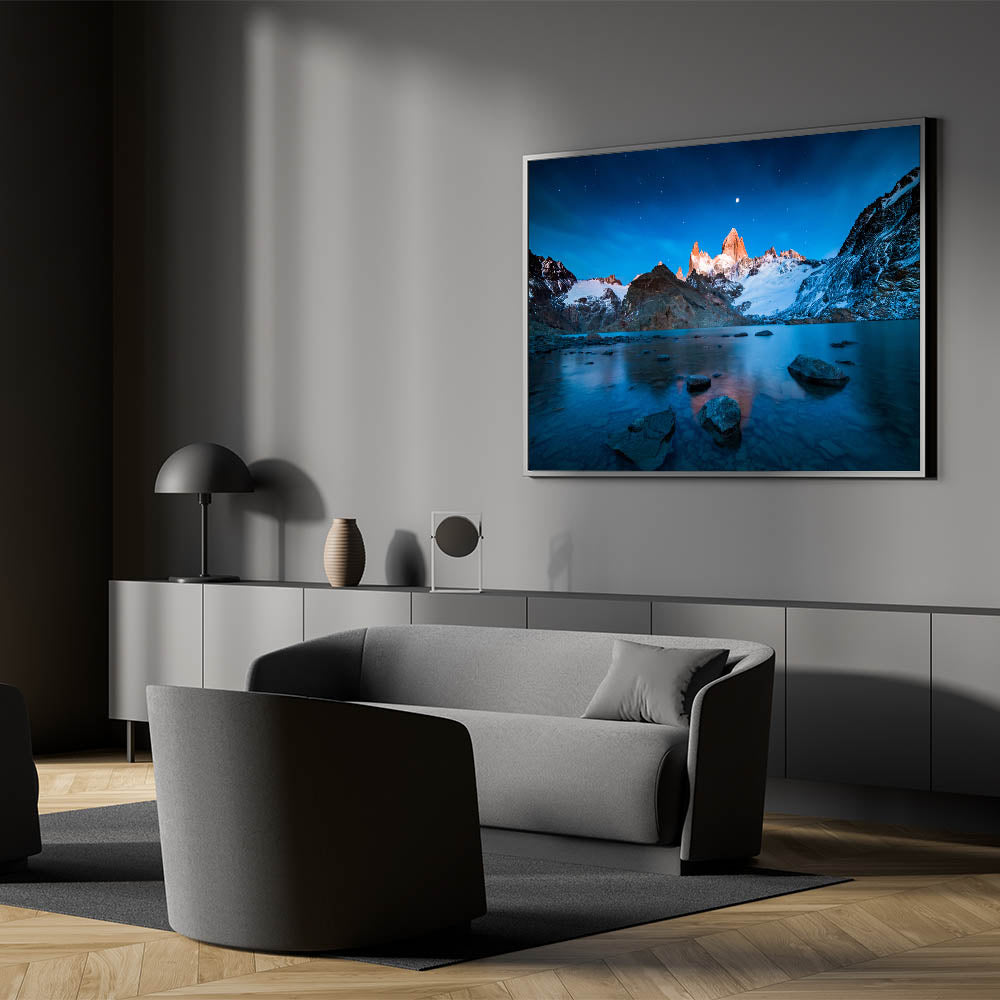 Enhance your living space or office with this breathtaking view of Patagonia, inviting a piece of the serene yet powerful natural world into your daily life.