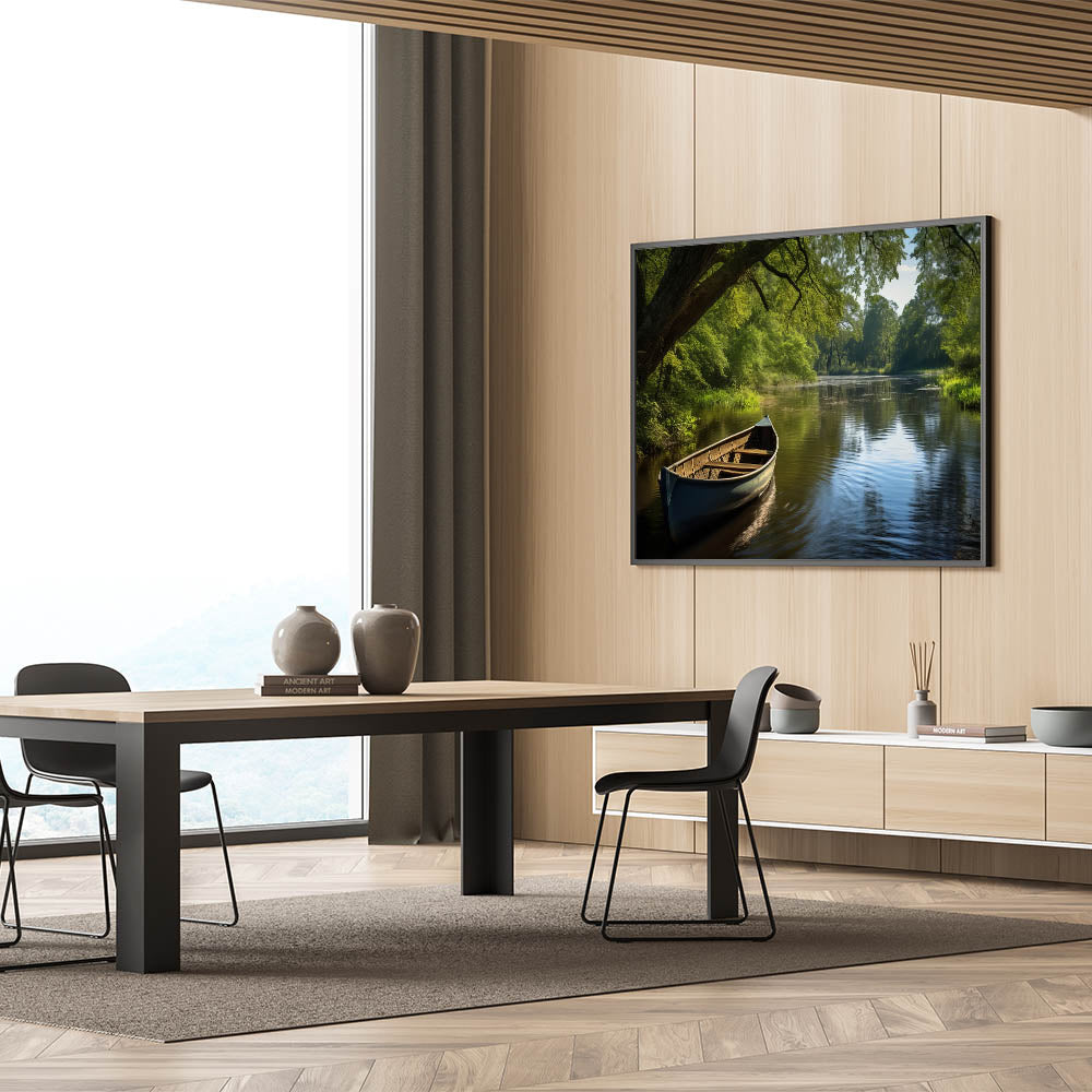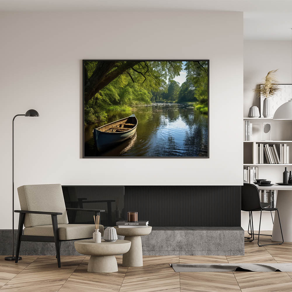 Peaceful Rowboat on Forest River - Serene Coastal Wall Art Print