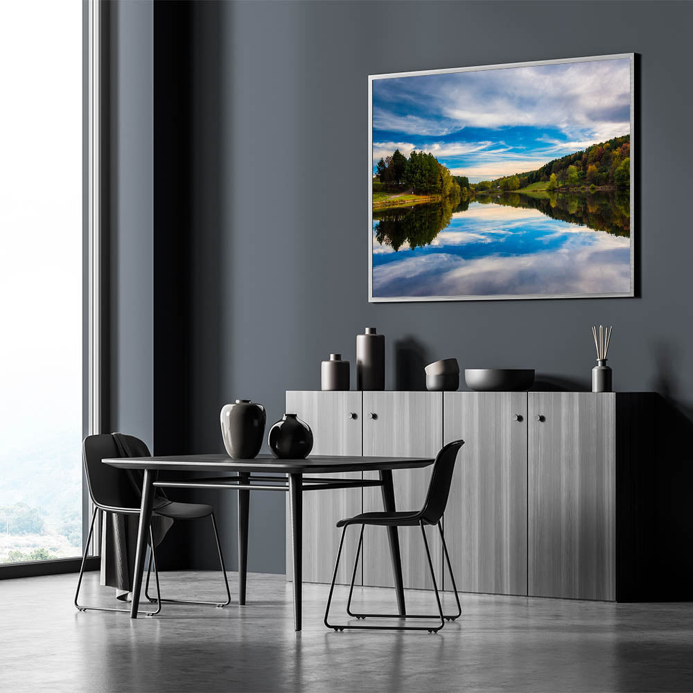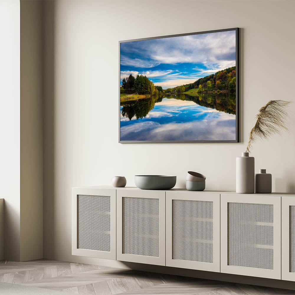 Transform your space with the serene beauty of Pennsylvania’s natural landscapes, beautifully captured in this tranquil lake reflection. This high-quality Pennsylvania landscape art offers a peaceful view of a still lake reflecting the lush trees and vibrant sky, perfect for adding a calming touch to your home or office. The artwork captures the essence of Pennsylvania’s stunning scenery, making it an ideal choice for nature lovers and art enthusiasts alike.