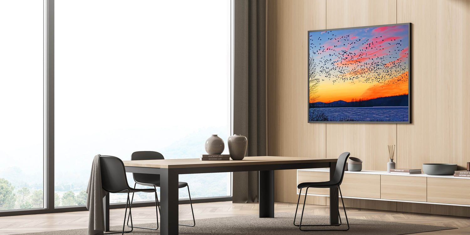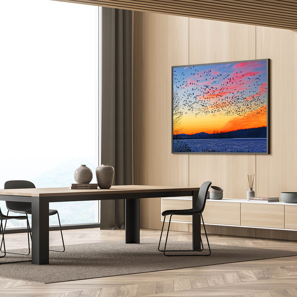 Bring the beauty of Pennsylvania’s skies into your home with this stunning nature art featuring a flock of birds against a vibrant sunset sky. This high-quality Pennsylvania nature art captures the movement of birds in flight as the colorful hues of orange, pink, and blue paint the sky. Perfect for adding a dramatic yet peaceful touch to any room, this artwork embodies the serene beauty of Pennsylvania’s natural landscapes.