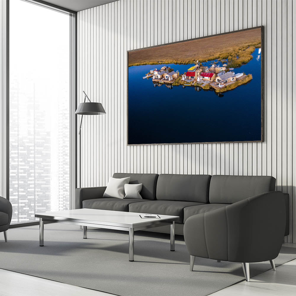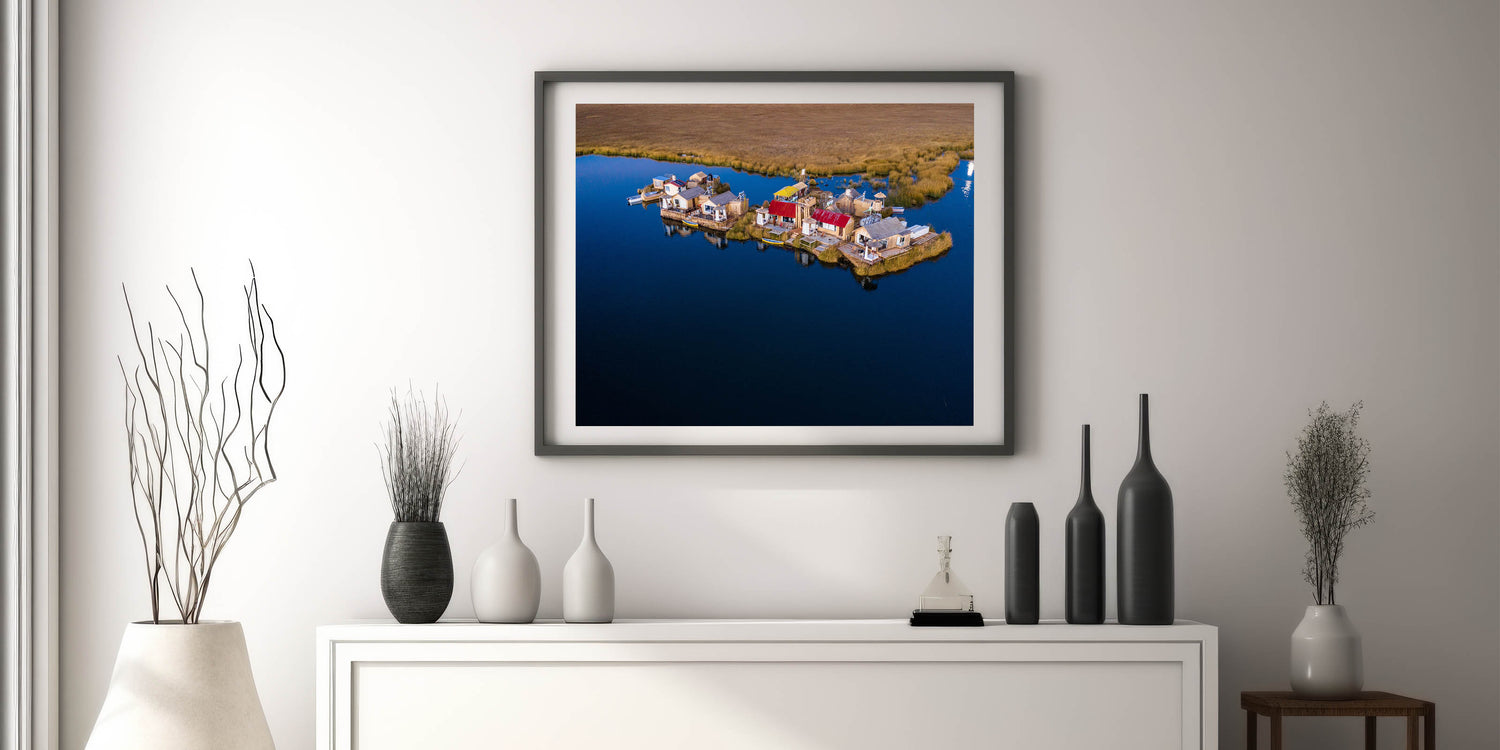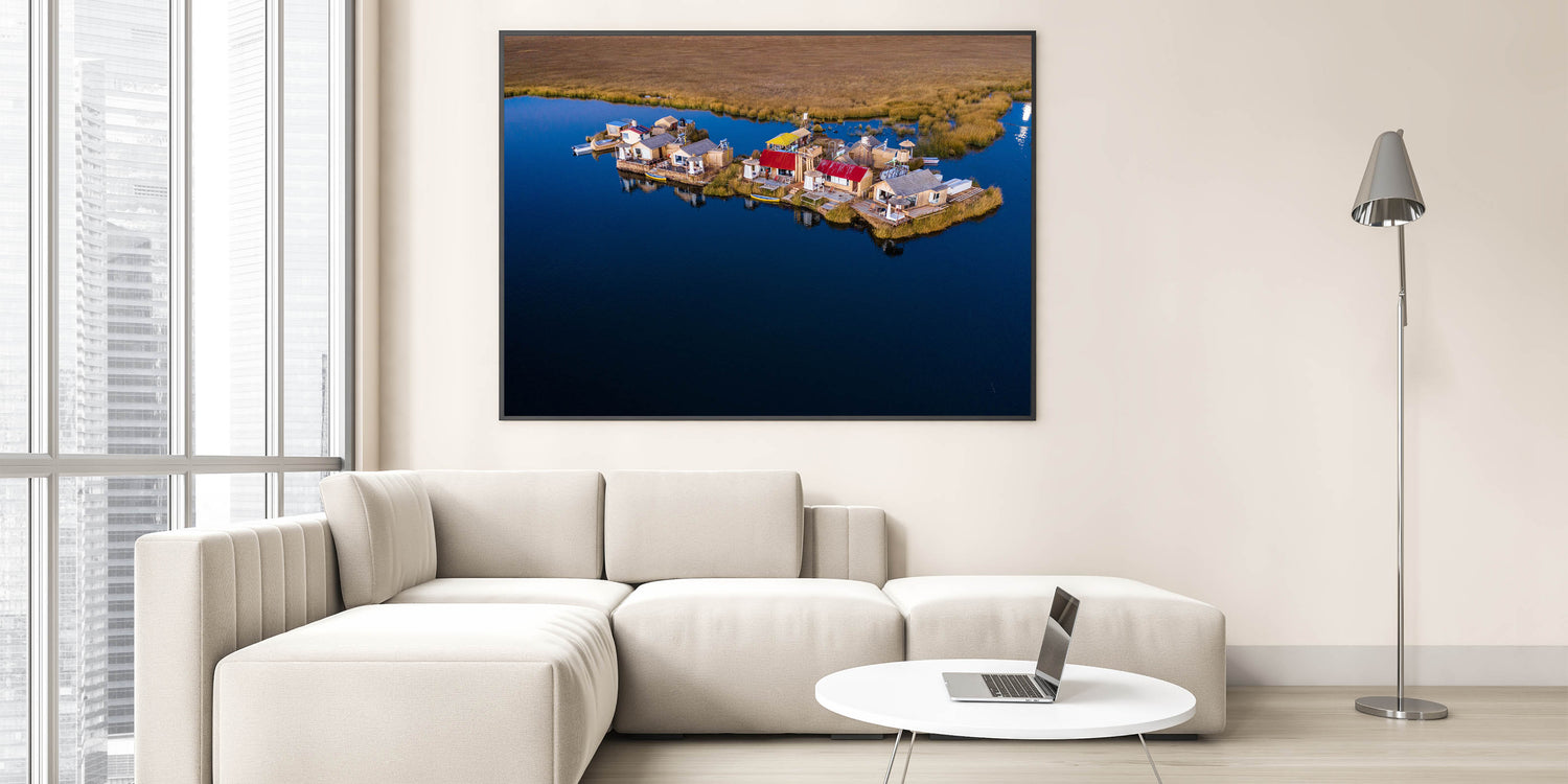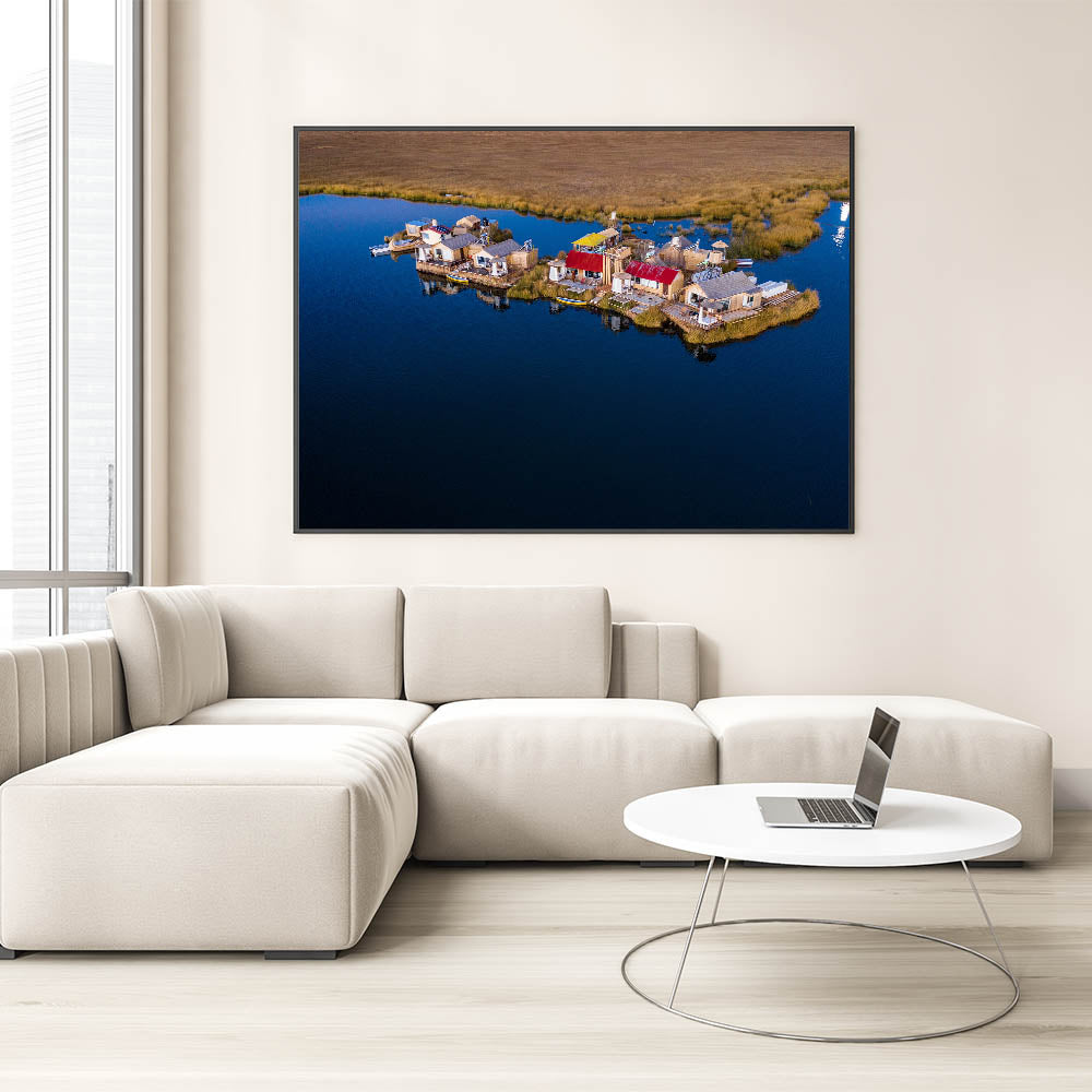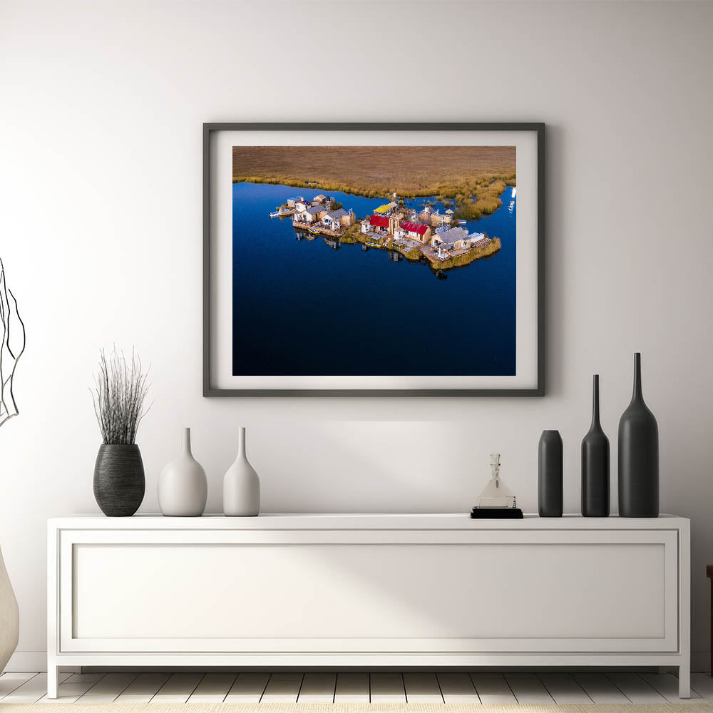 - High-resolution print that captures the fine details of the floating homes and calm waters of Lake Titicaca