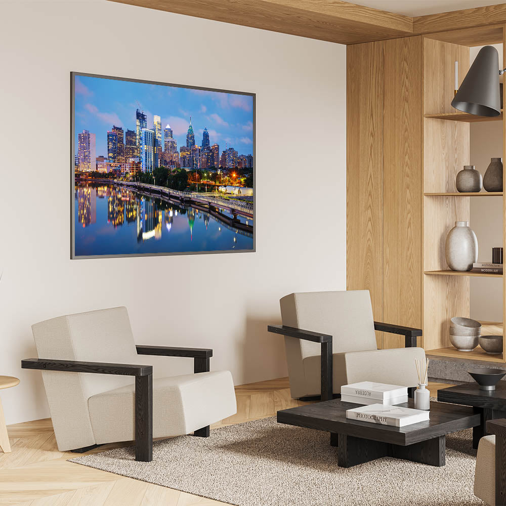 This Philadelphia skyline photography is more than just a piece of art; it's a gateway to the city's twilight charm. Ideal for homes, offices, or galleries, this artwork will transform your space into a tranquil and sophisticated environment. Bring the beauty of Philadelphia into your life today with this captivating piece.