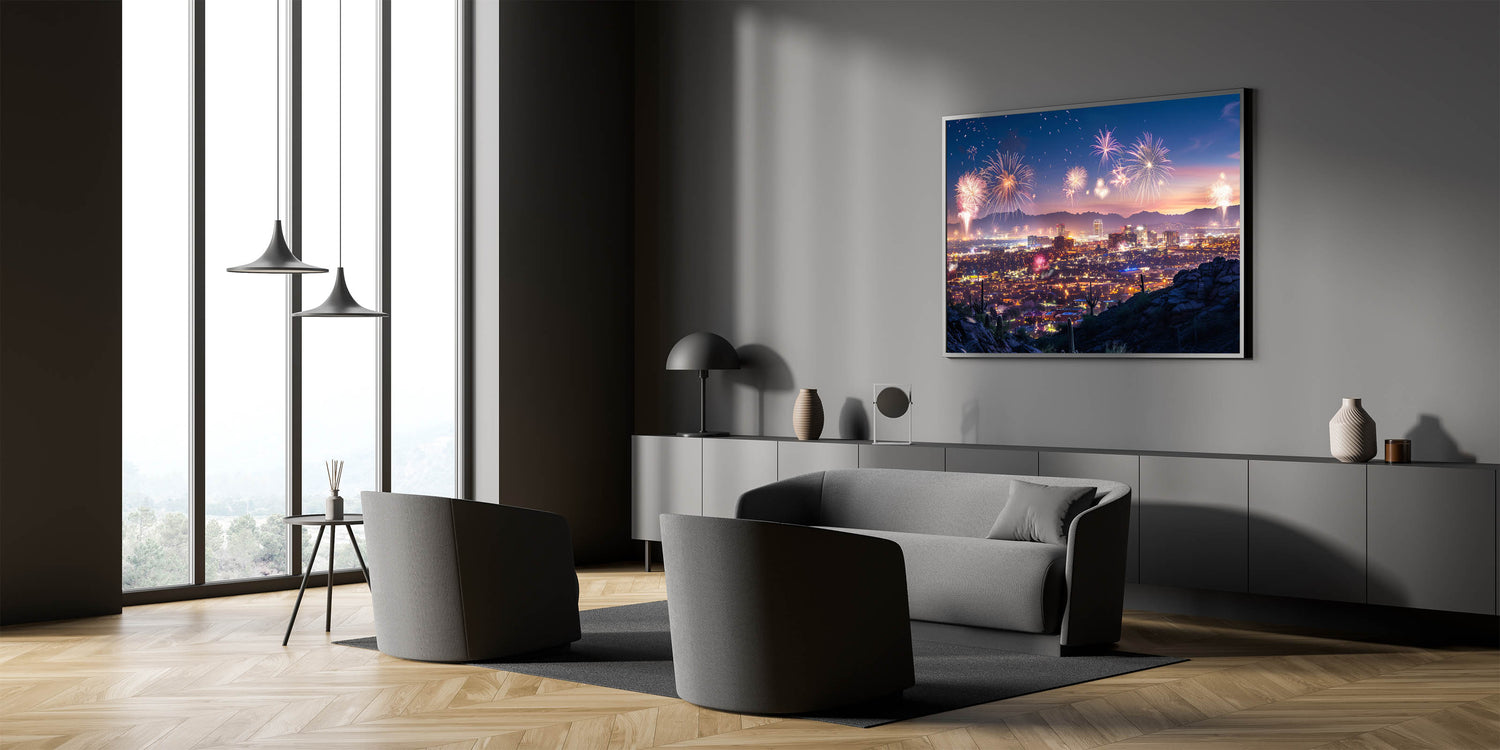 - Dynamic composition that brings the excitement of fireworks and the beauty of the city to life.