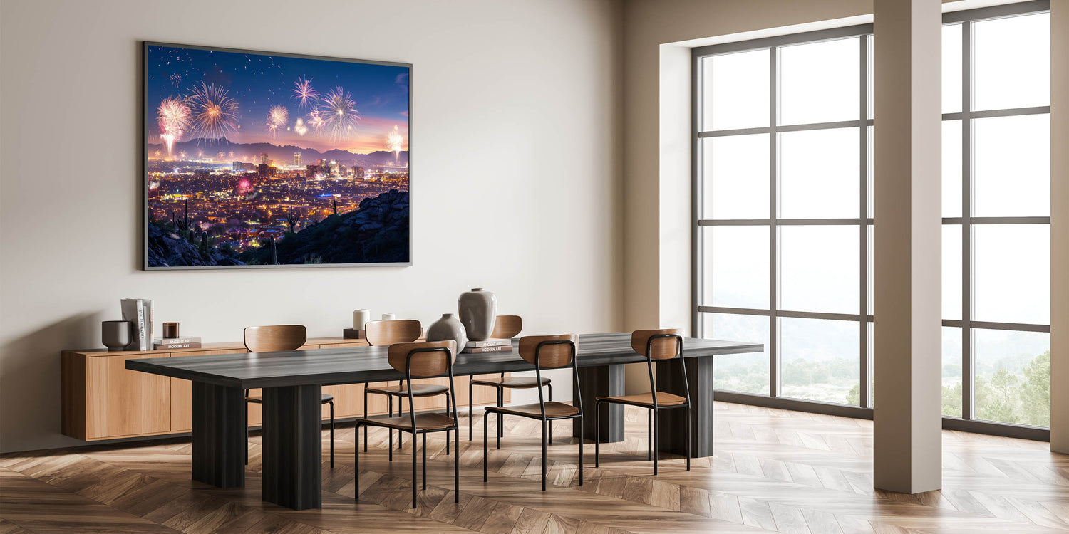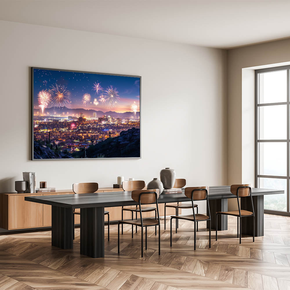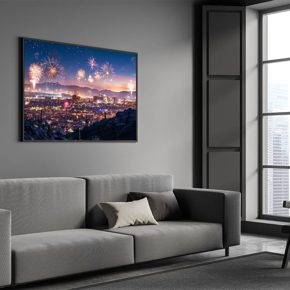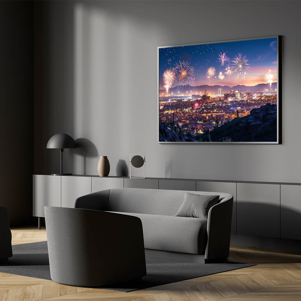 Phoenix Skyline Wall Art | Festive Fireworks Cityscape Print