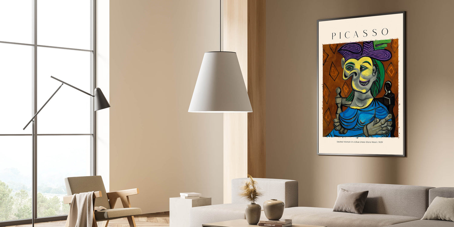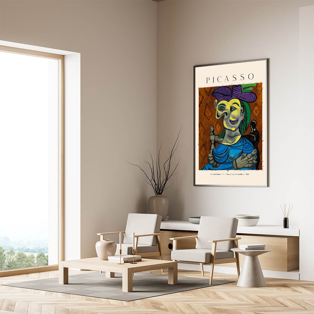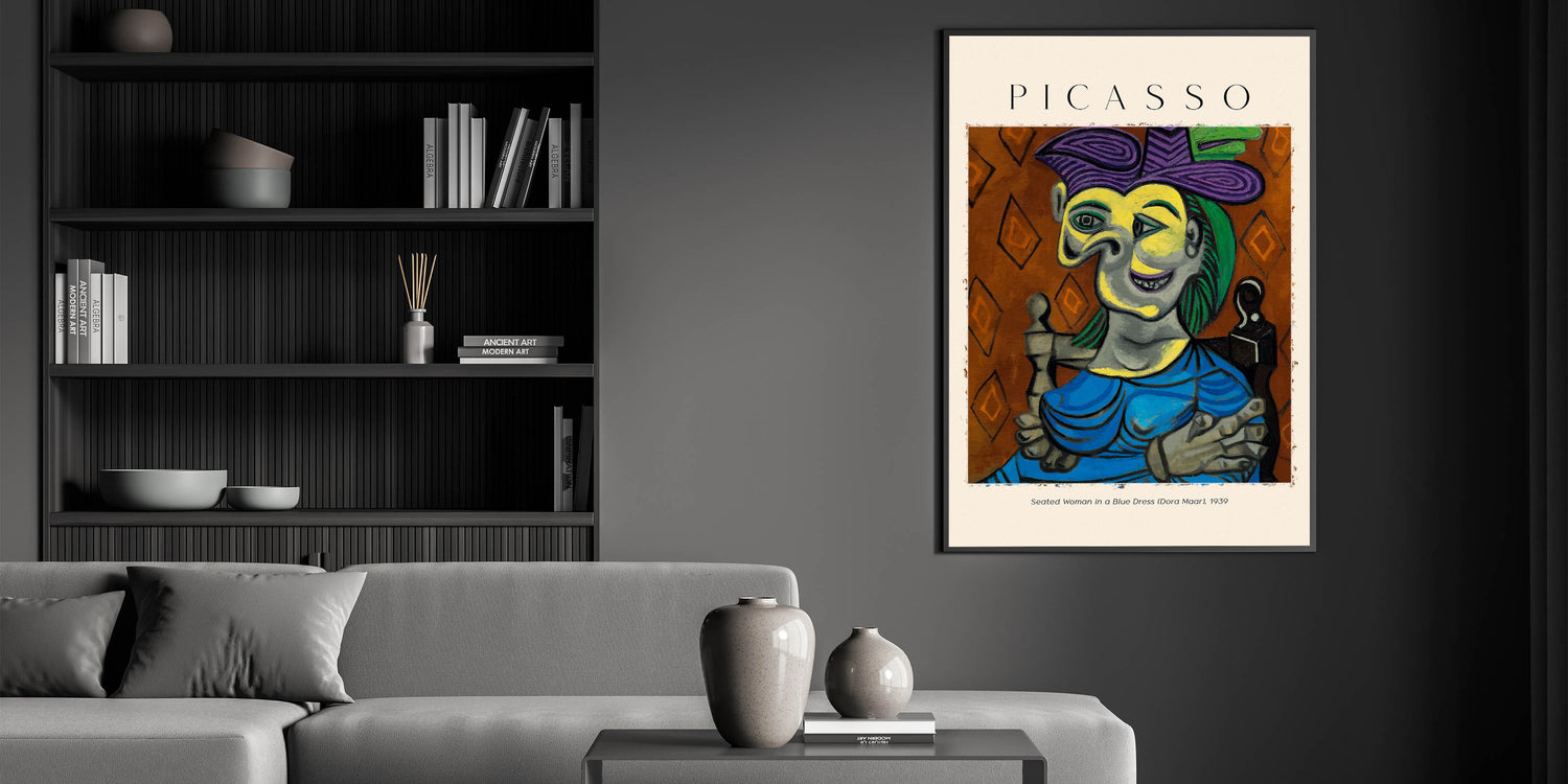 - High-quality reproduction of Picasso’s "Seated Woman in a Blue Dress" (Dora Maar)