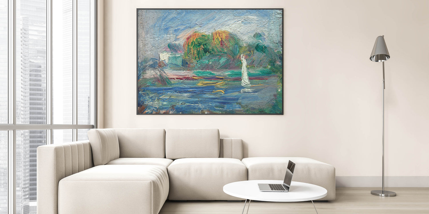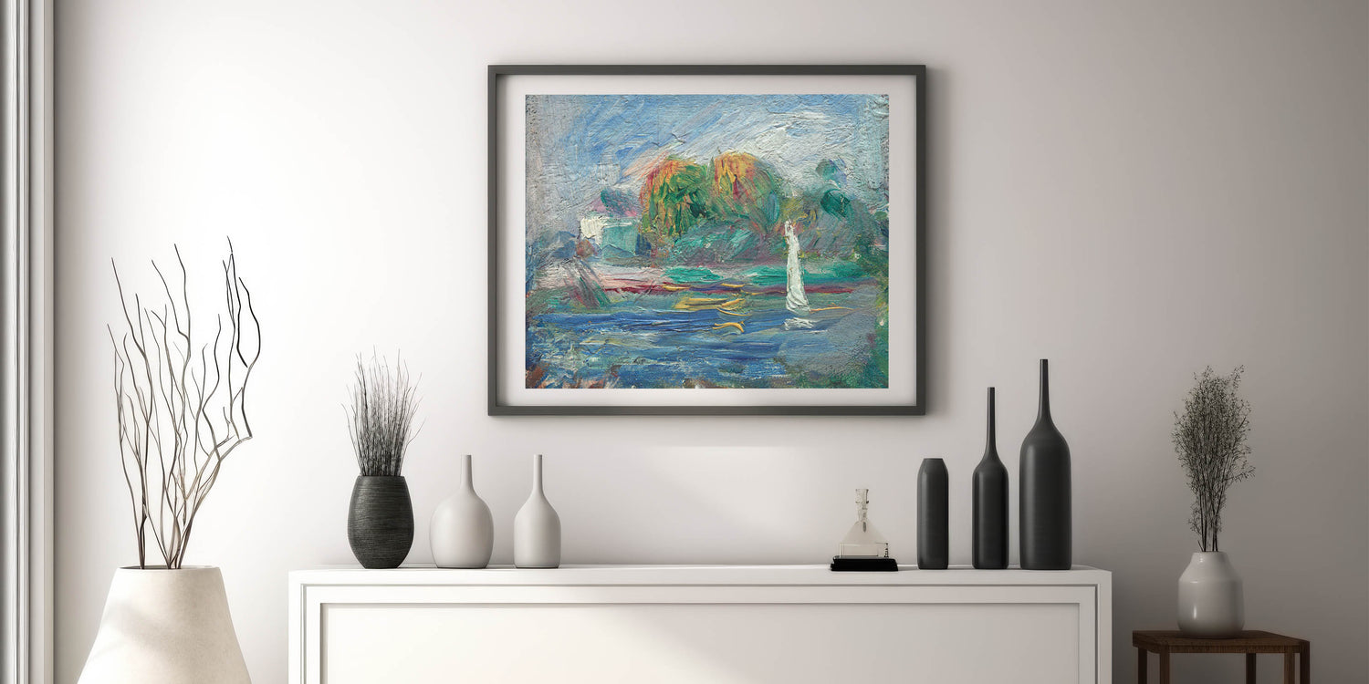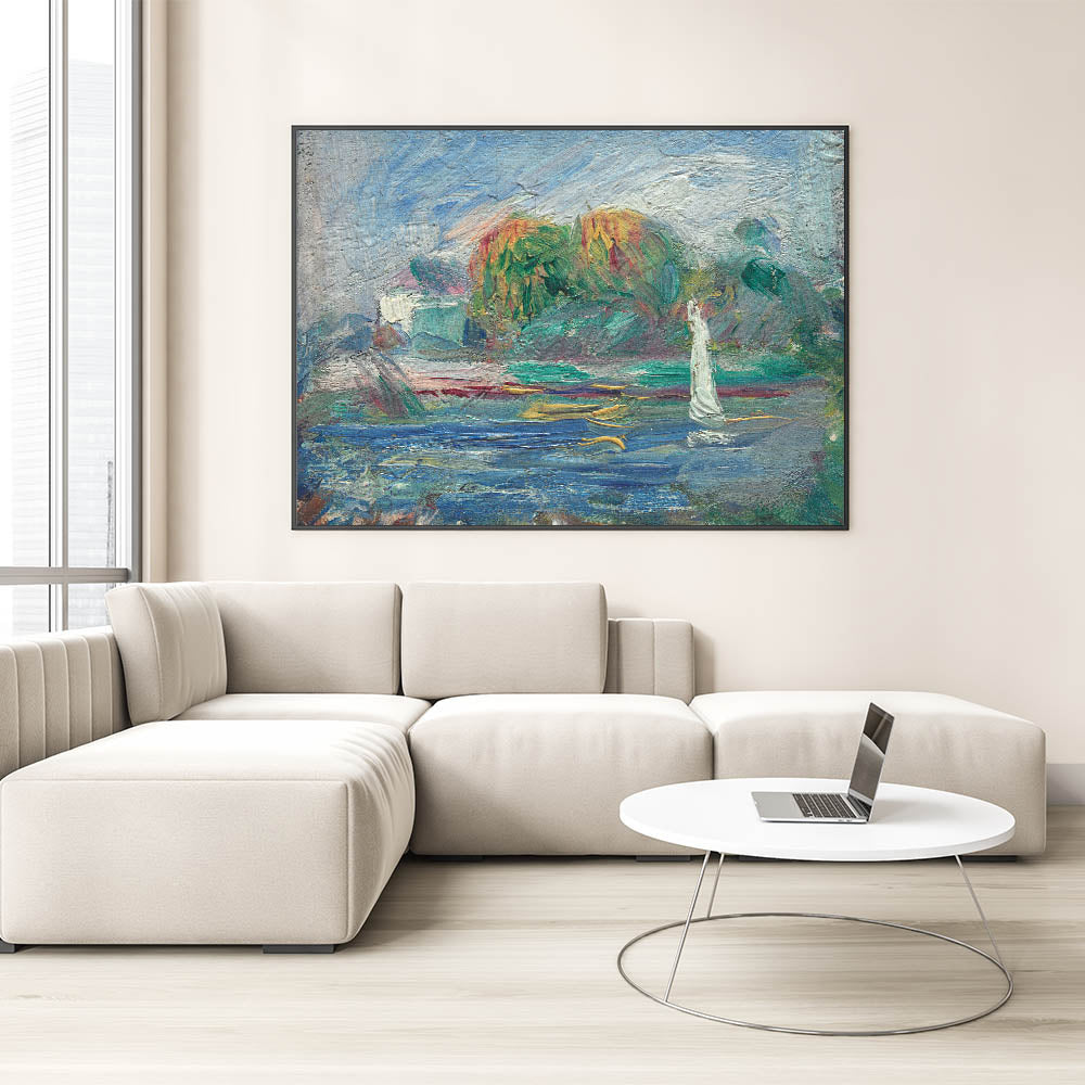 Step into the world of French Impressionism with this vibrant landscape by Pierre-Auguste Renoir, featuring a scenic riverbank with sailboats gently drifting on the water. The bold brushstrokes and rich color palette capture the natural beauty of the outdoors, showcasing Renoir’s unparalleled ability to depict captivating landscapes. This piece embodies Renoir’s vibrant brushwork, where the interplay of light and shadow brings the scene to life. Perfect for those who admire the timeless elegance of Renoir's paintings, this print infuses any room with the beauty of nature and the charm of Impressionist art.