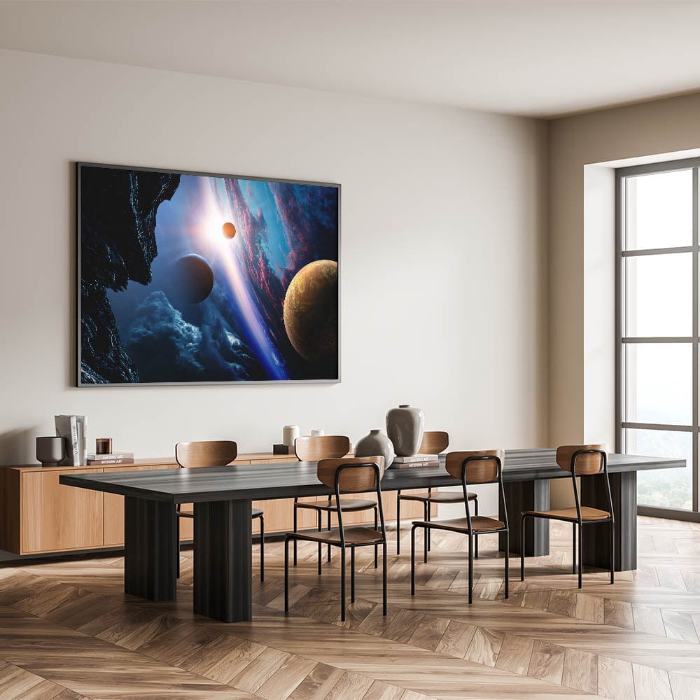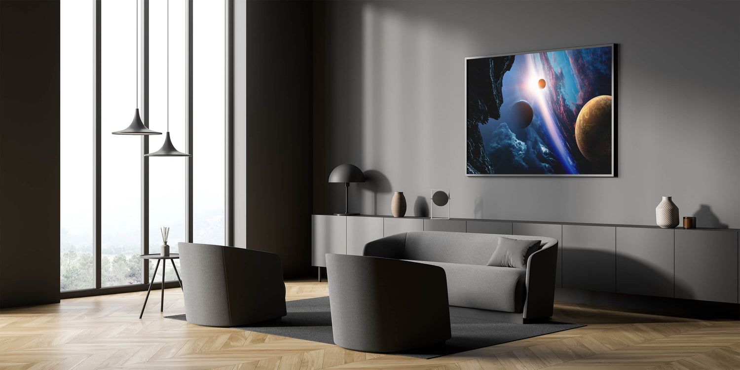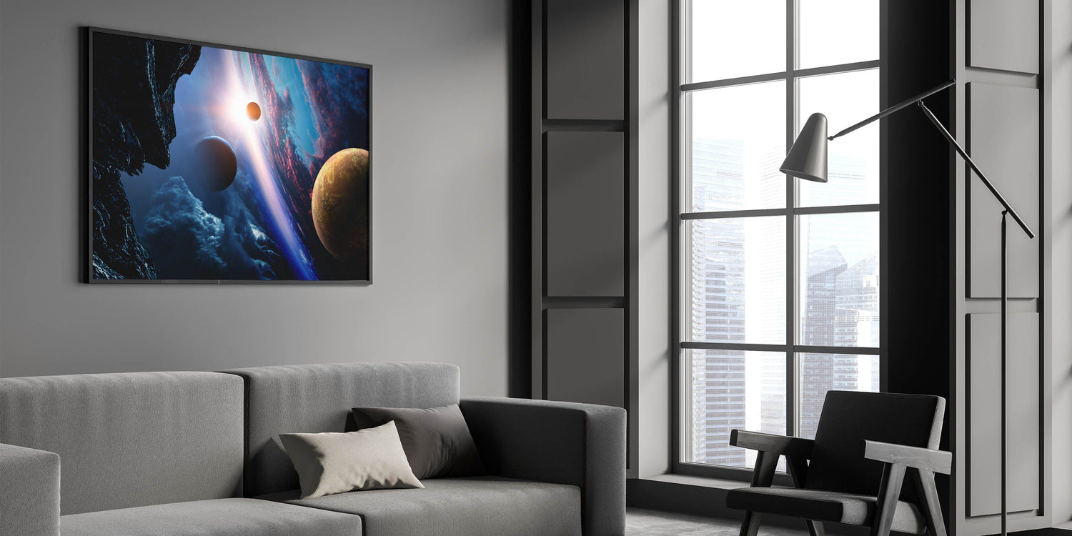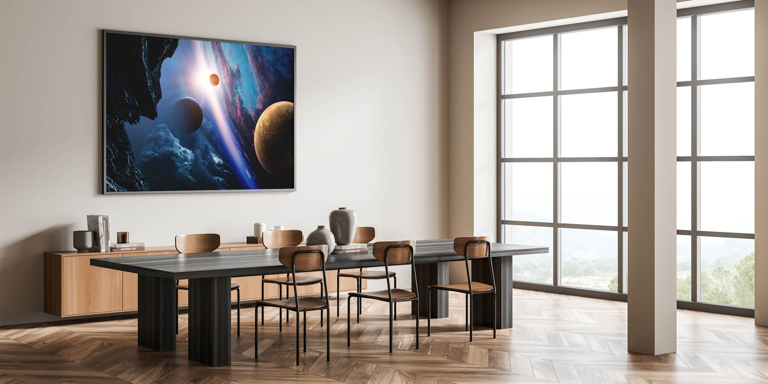 Planetary Sunrise and Moonscape Art - Cosmic Space Wall Decor