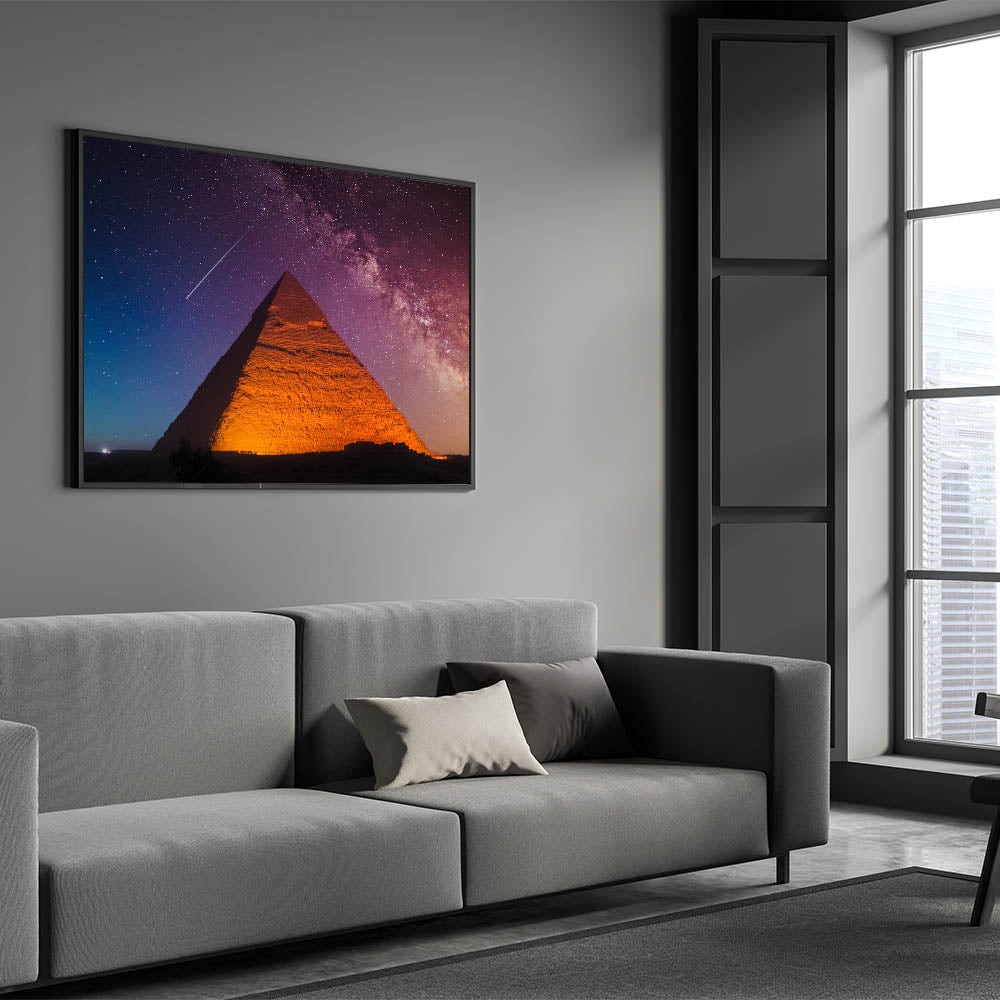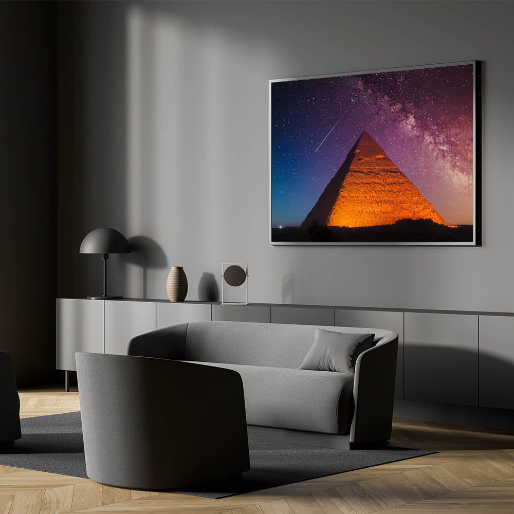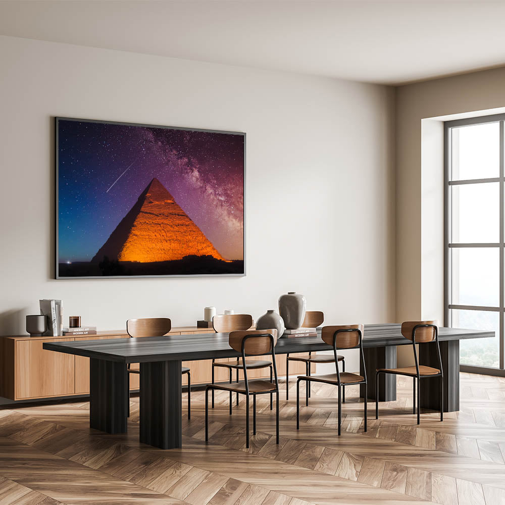 This piece of art is perfect for those who are fascinated by the mysteries of Egypt and the cosmos. It brings together the ancient and the celestial, making it a must-have for any art collection.