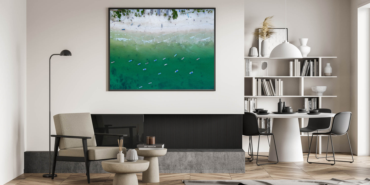 Quintana Roo Wall Art – Beach and Boats Canvas with Aerial View