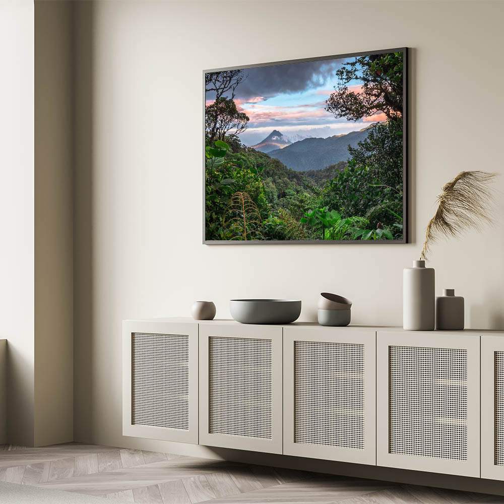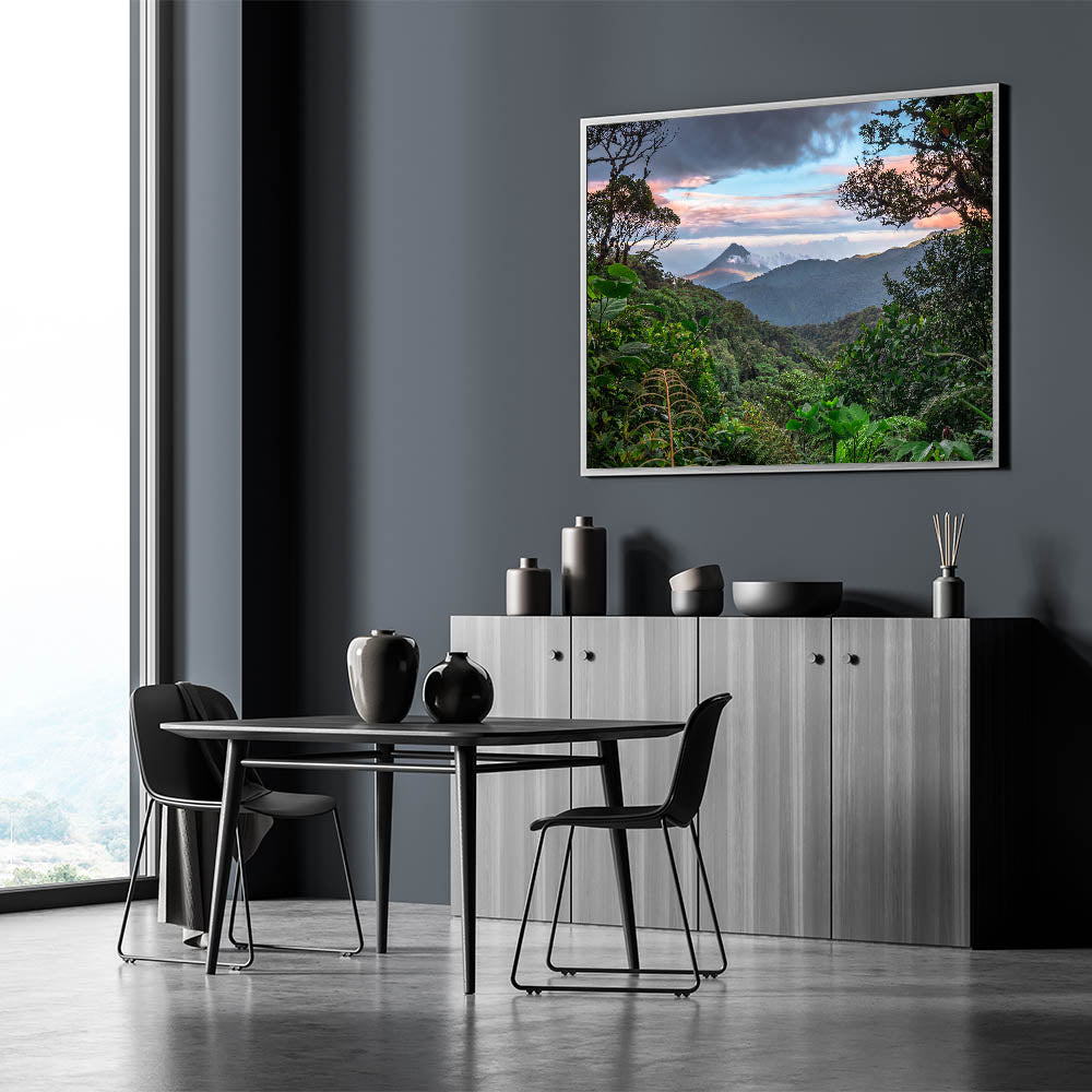 Bring the beauty of the rainforest and the tranquility of nature into your home with this stunning mountain vista art print. It’s a perfect addition to your art collection or a thoughtful gift for those who appreciate the wonders of the natural world.