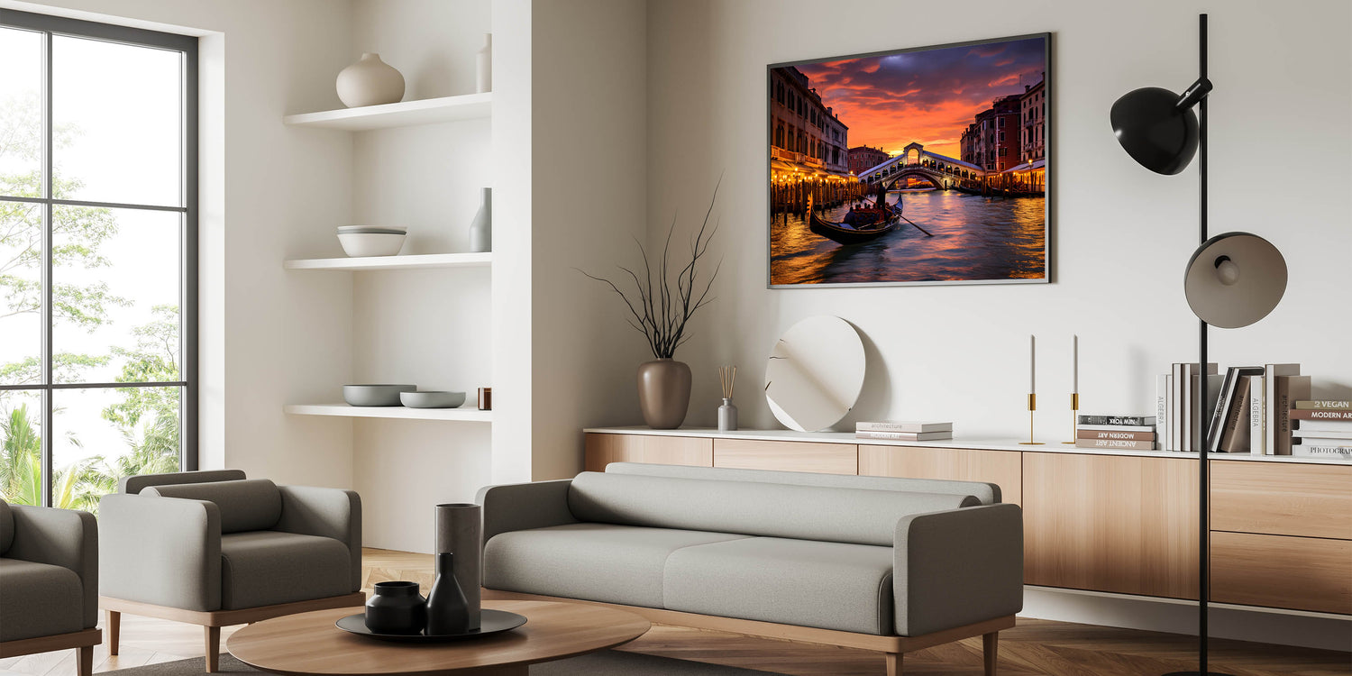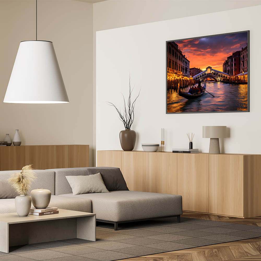 This scenic gondola view invites you to experience the magic of Venice at sunset, where every corner reveals a new story. Perfect for lovers of travel, culture, and art, this piece will bring warmth and sophistication to any room in your home.