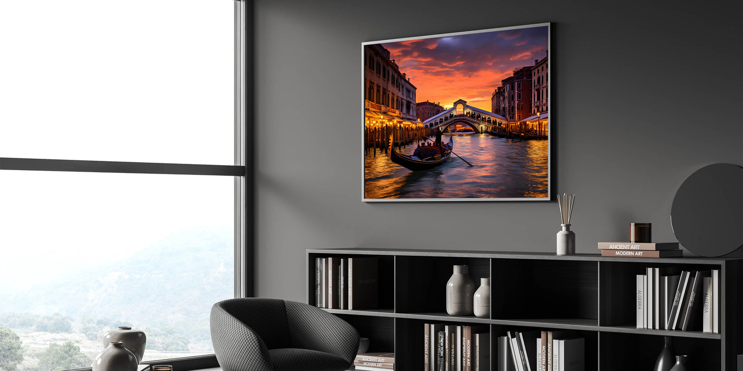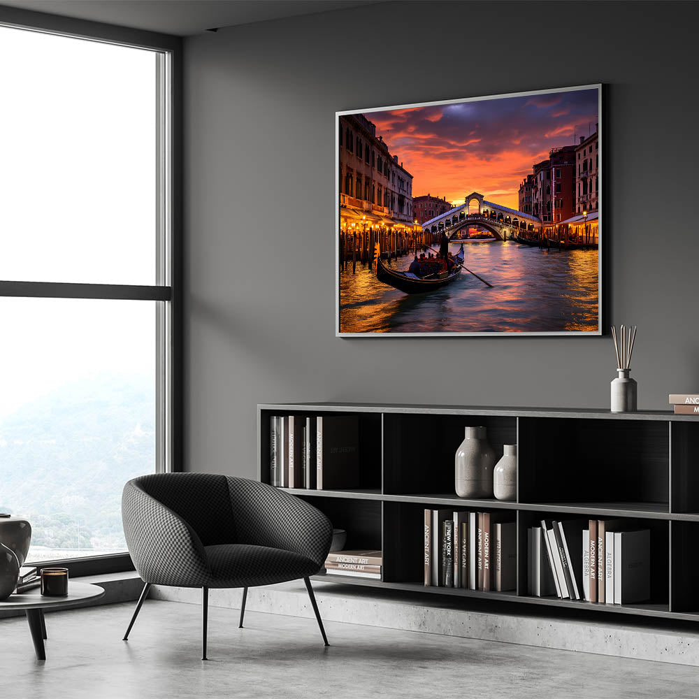 Rialto Bridge at Sunset: Gondola Wall Art for Romantic Venetian Decor