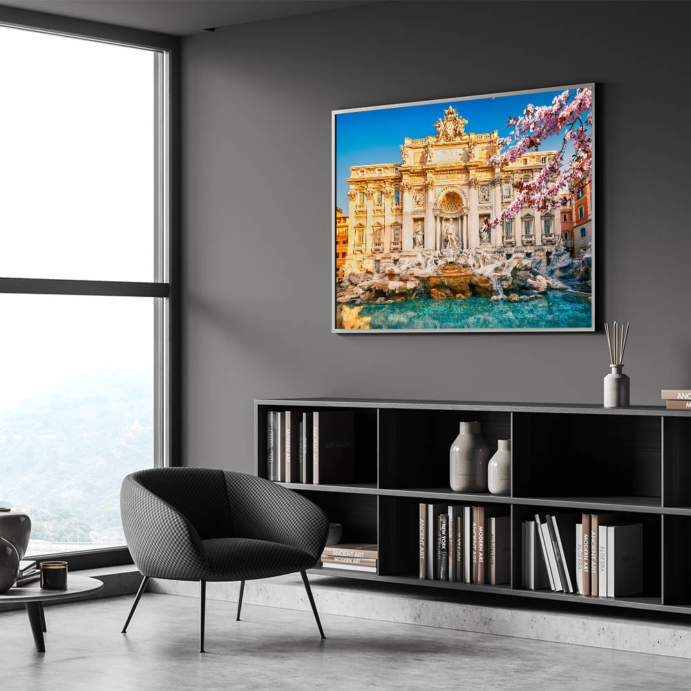 Rome Landmarks - Trevi Fountain with Blossoms Italian Wall Art
