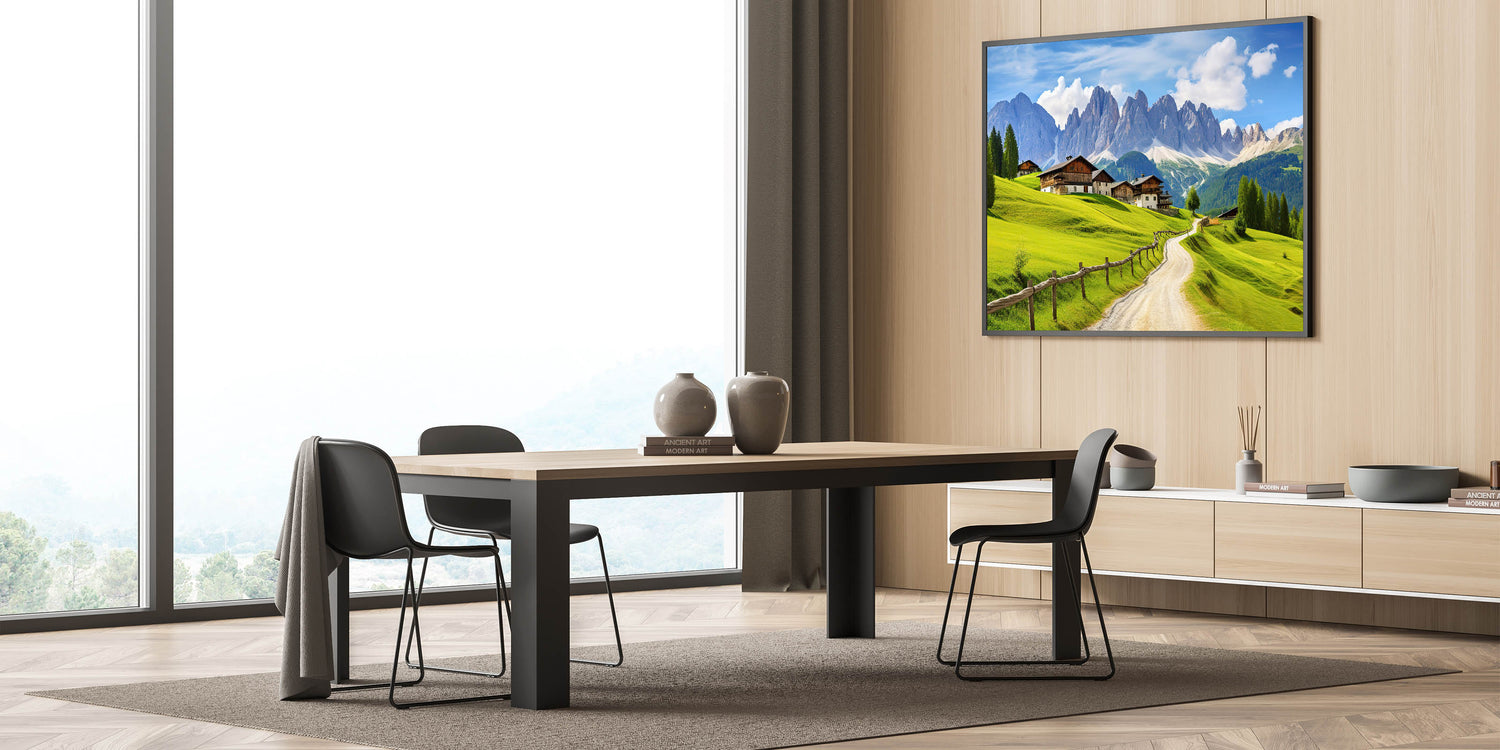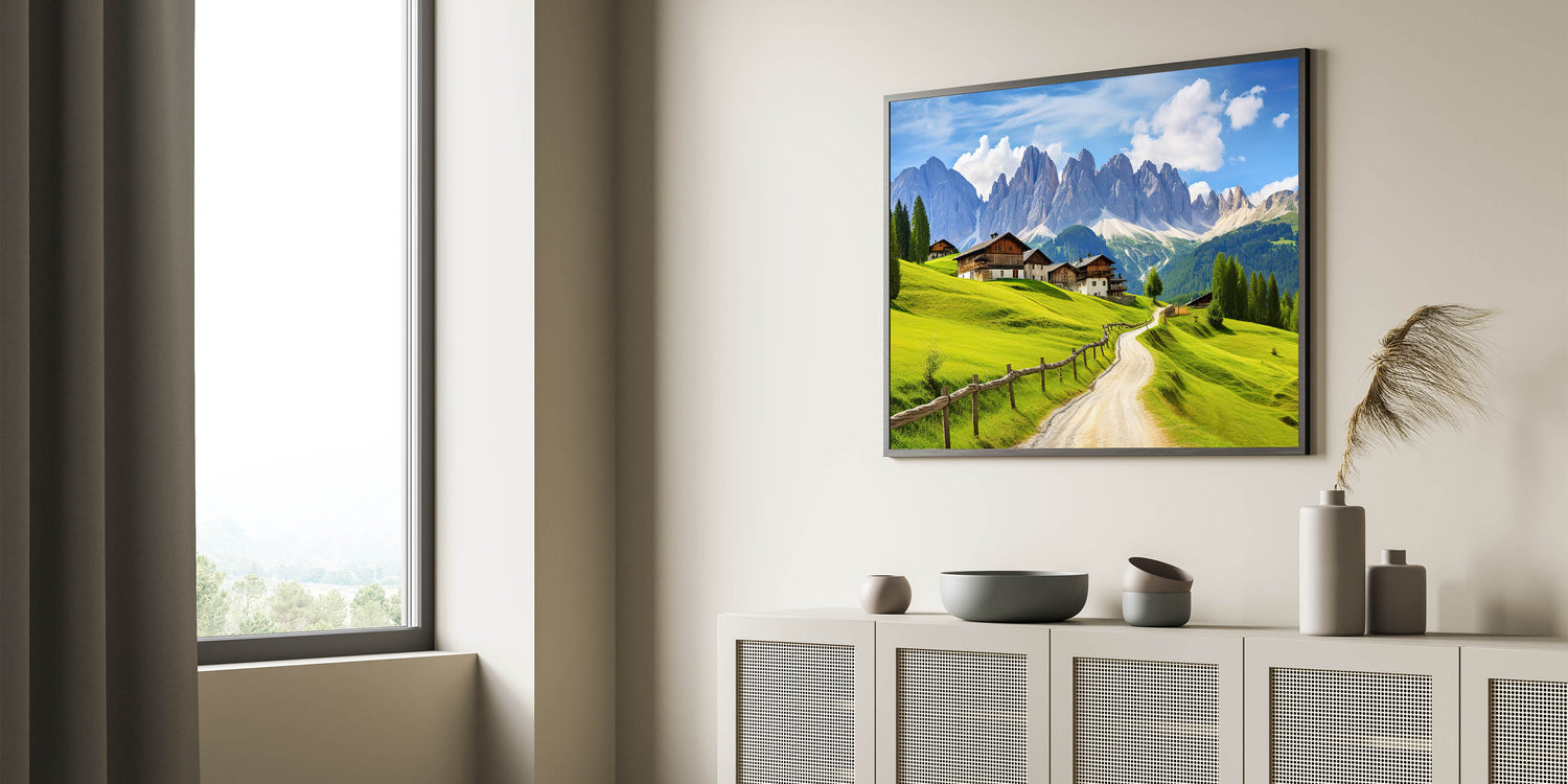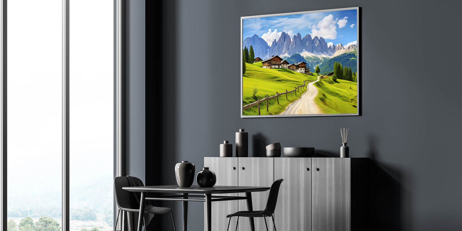 - Vivid Colors: The lush green fields, clear blue sky, and detailed mountain scenery make this artwork a striking addition to any room.
