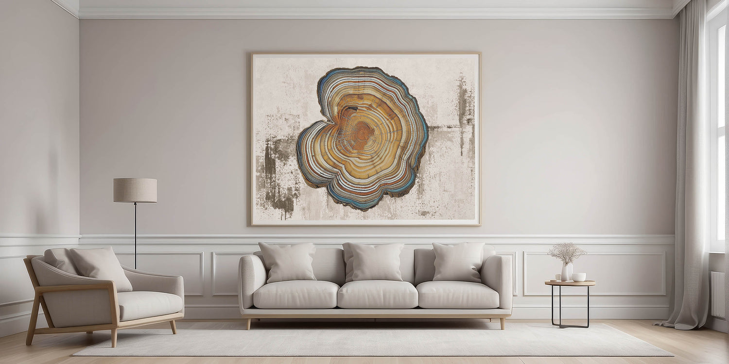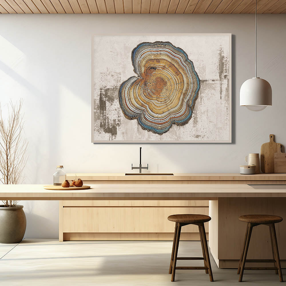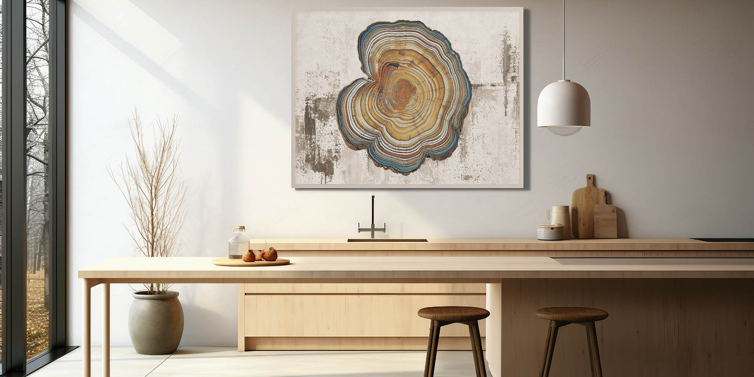 Elevate your home decor with this exquisite artwork that combines the organic beauty of a tree slice with the dynamic energy of contemporary design. This piece is sure to be a conversation starter and a beloved addition to your art collection.