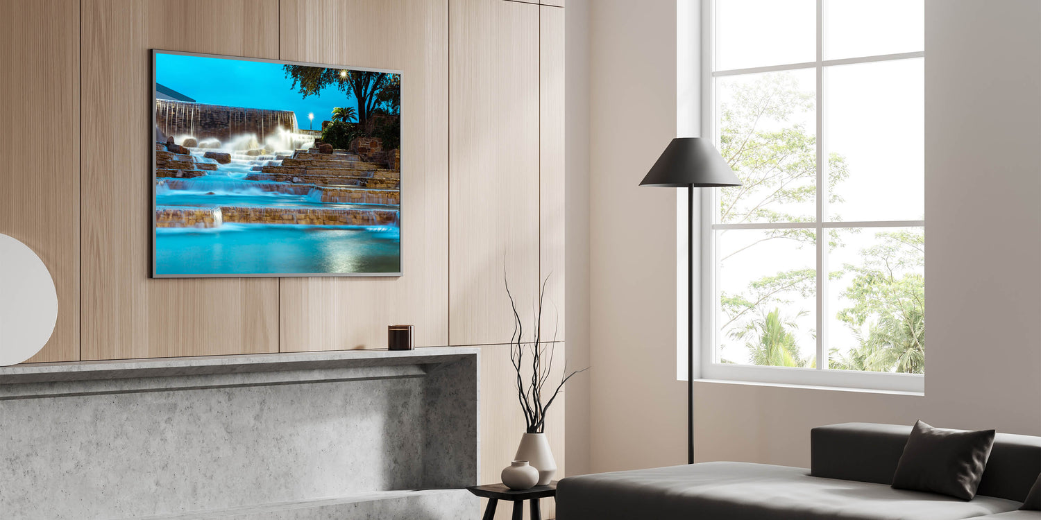 - Custom framed Riverwalk artwork adds a polished, sophisticated look