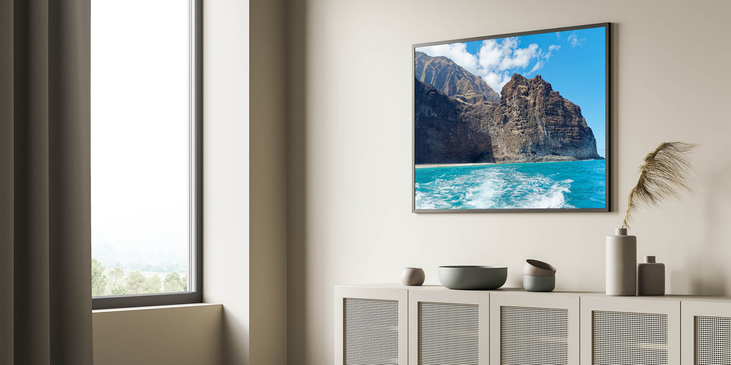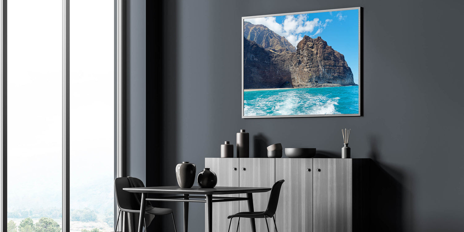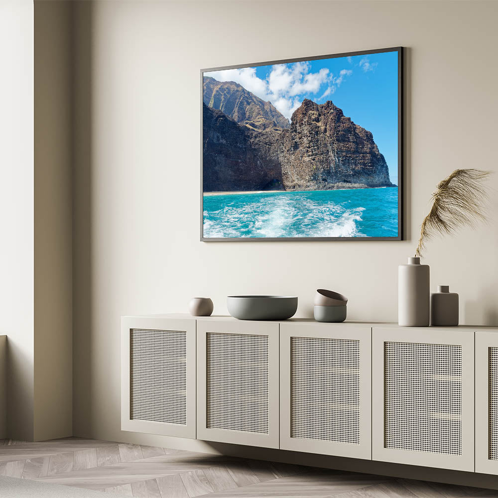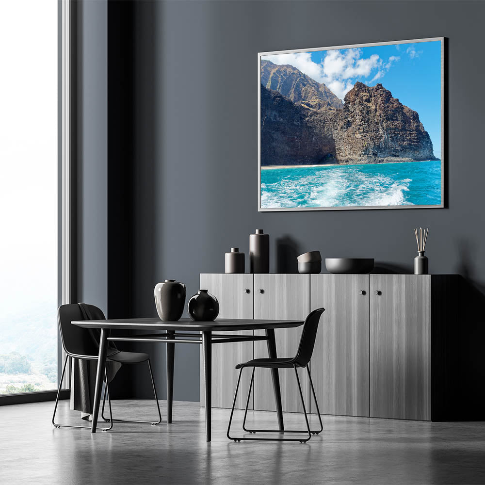 Bring the majesty of nature into your home with this "Scenic Cliffs Artwork." Ideal for creating a calming atmosphere, this piece will effortlessly complement various interior design styles, from modern to coastal themes.