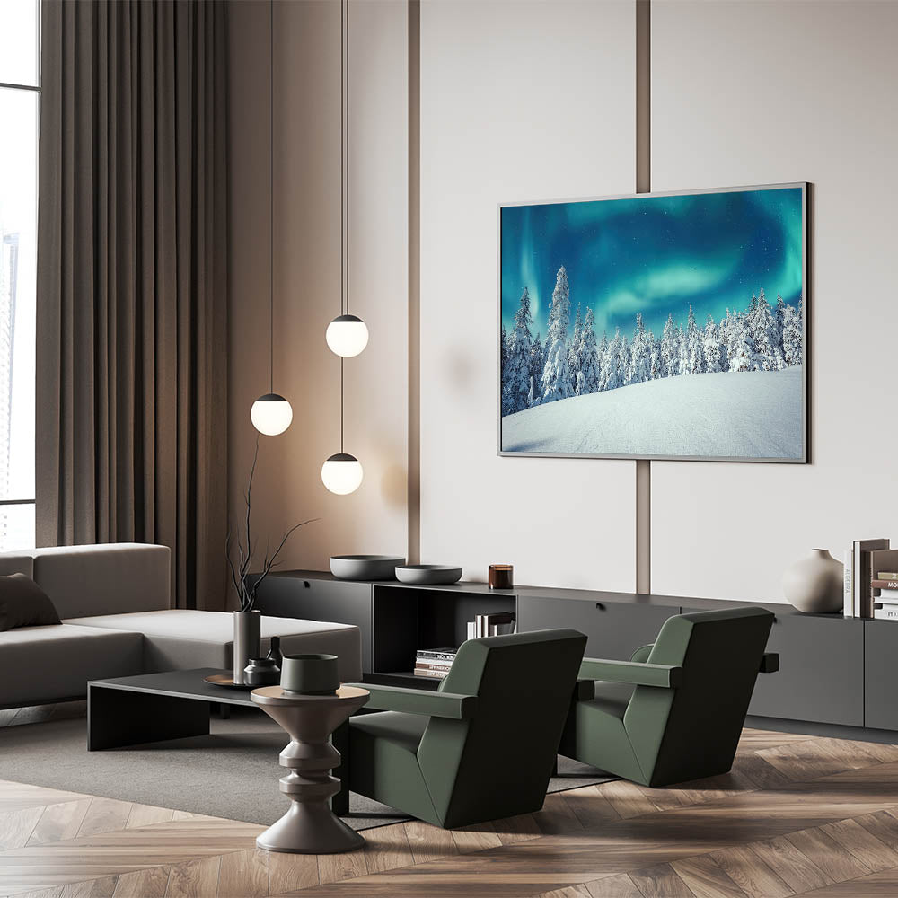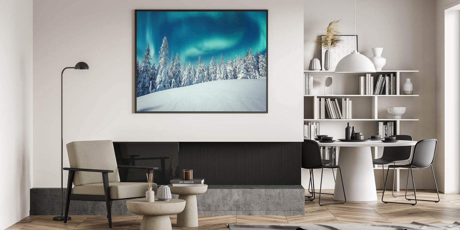 Scenic Finland Art – Winter Forest & Northern Lights Landscape Print
