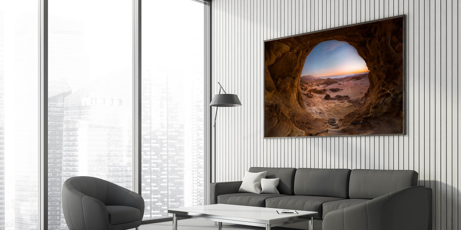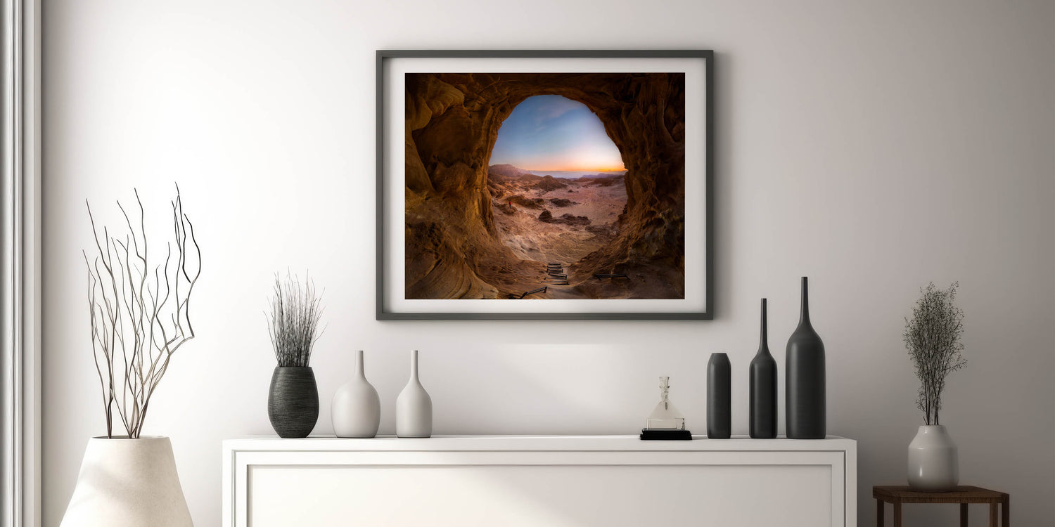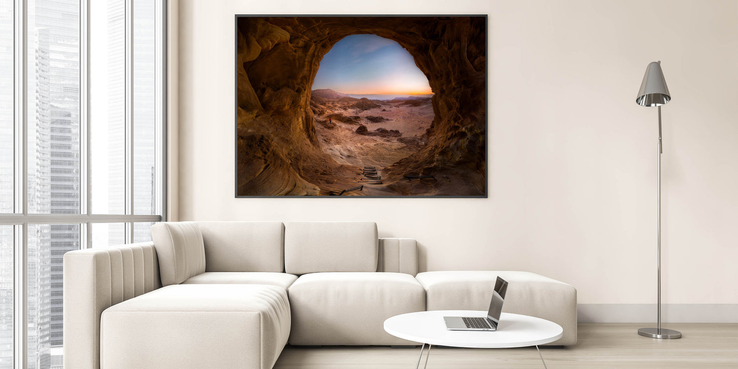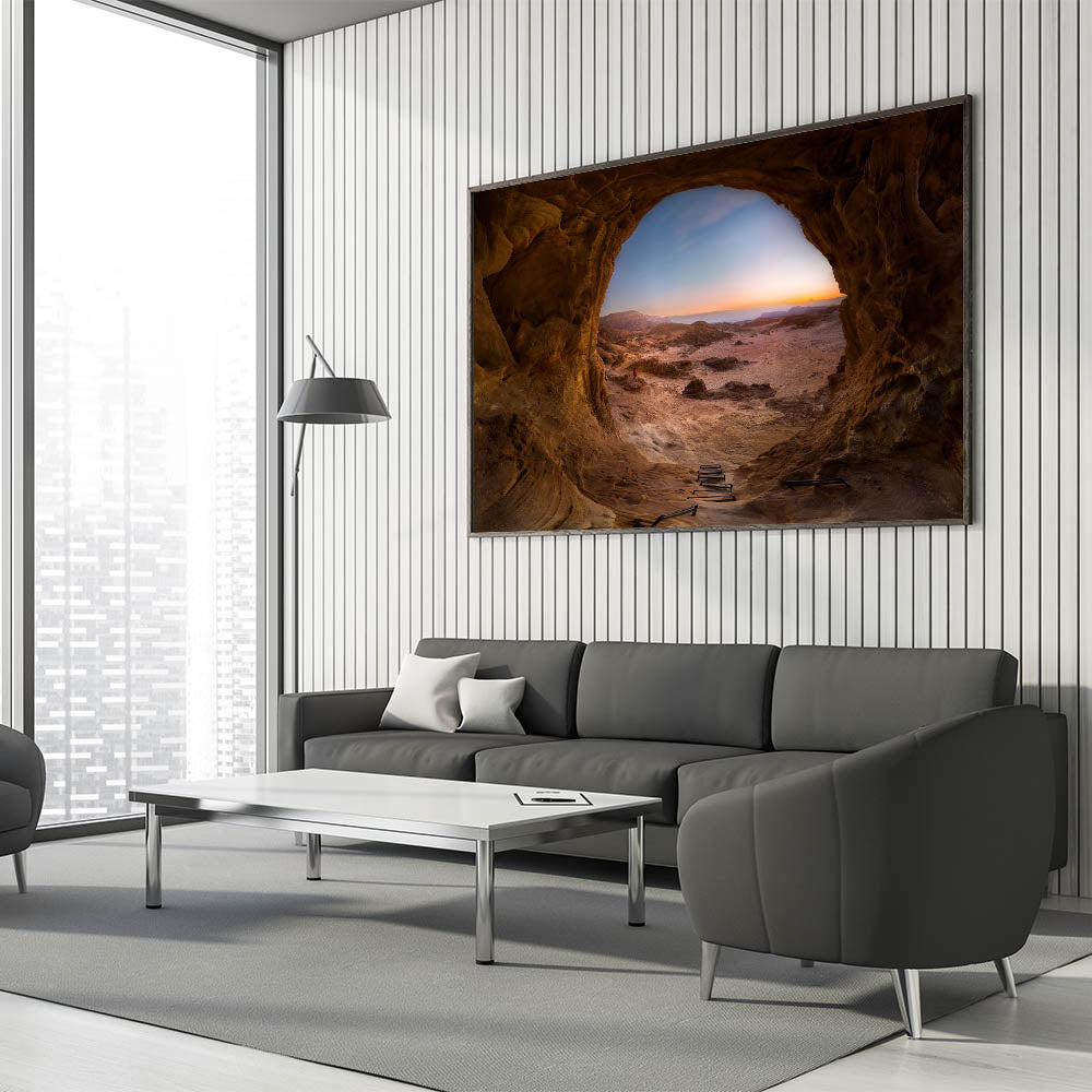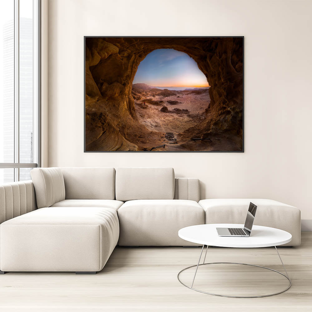 Scenic Israel Photography – Desert Cave View at Sunrise Wall Art