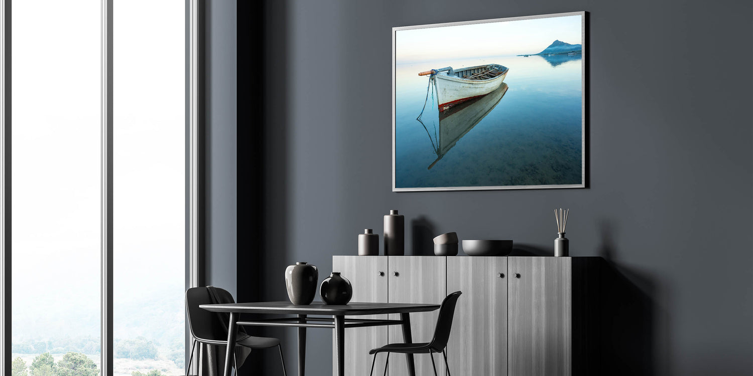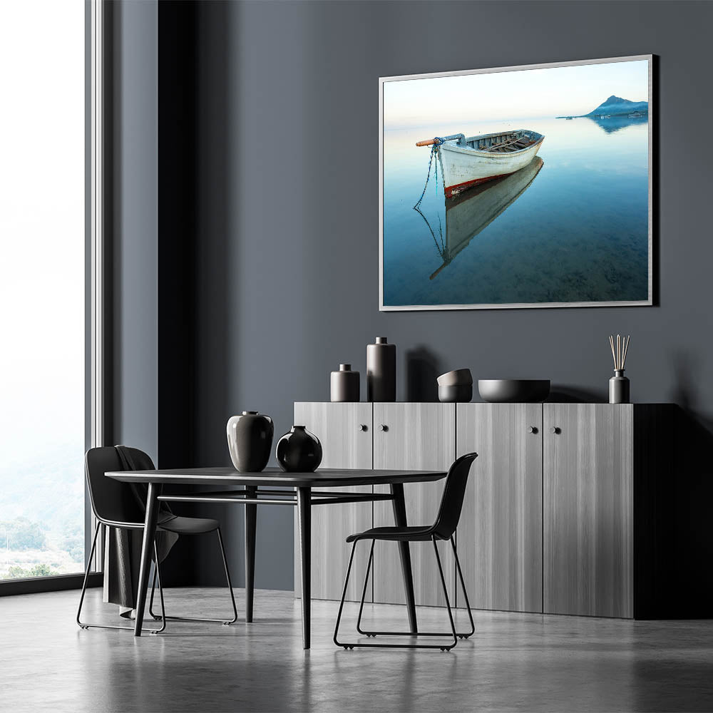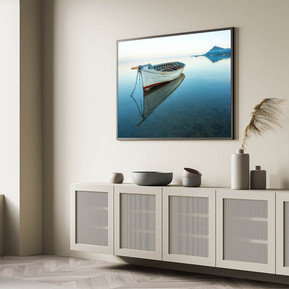 Experience the tranquility of the Caribbean with this stunning Scenic Martinique print, featuring a peaceful fishing boat resting on calm waters. This artwork perfectly captures the serene beauty of Martinique, with soft hues of blue and a reflective stillness that exudes calmness. The image of the lone boat floating effortlessly on the water reflects the peaceful, slow-paced lifestyle of the Caribbean, making this piece a perfect addition to any space seeking tranquility and relaxation. Available in a variety of formats, from stretched canvas to acrylic glass, this piece is versatile and suitable for any decor style.