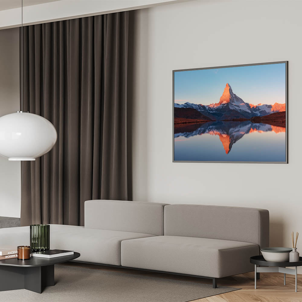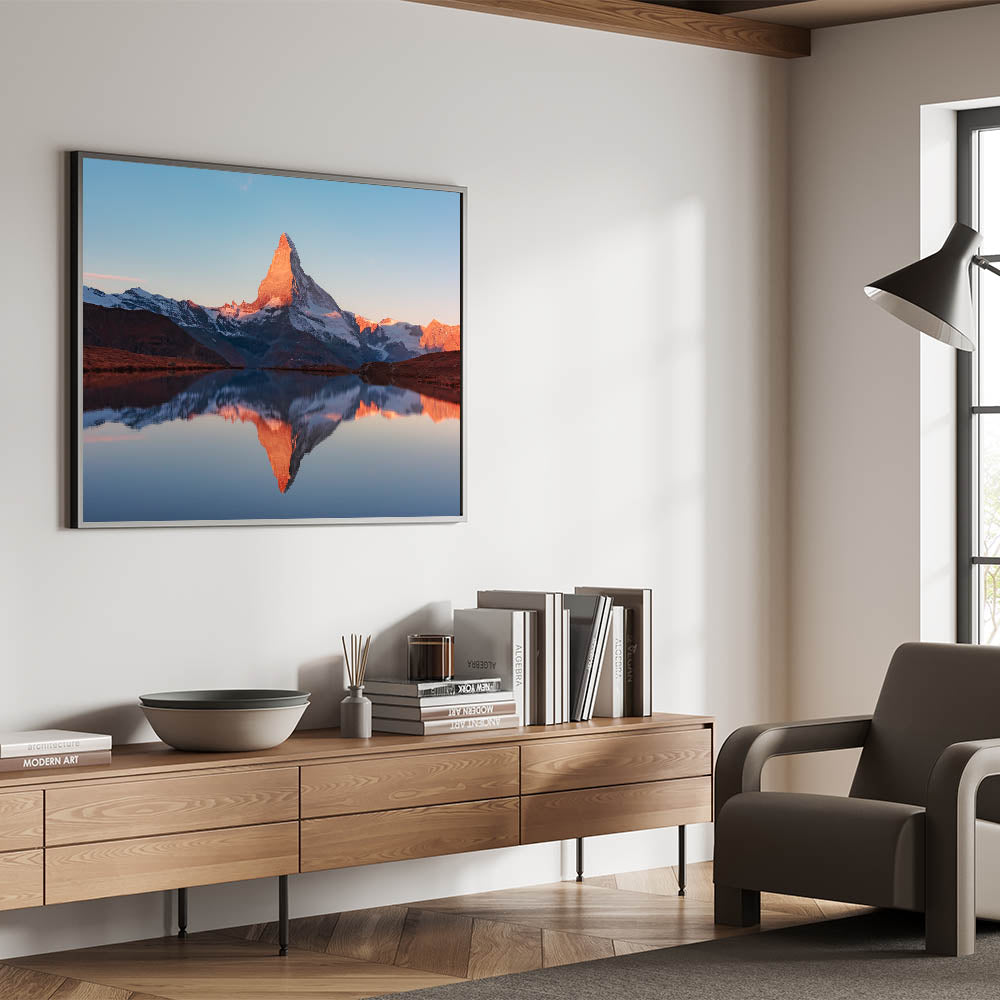 Introduction: Transform your space with this breathtaking mountain reflection in a serene lake, perfectly capturing the essence of nature's beauty. This piece, part of our Rocks in Landscapes collection, showcases stunning rock formations and scenic landscapes featuring rocks, bringing the tranquility of the outdoors into your home.