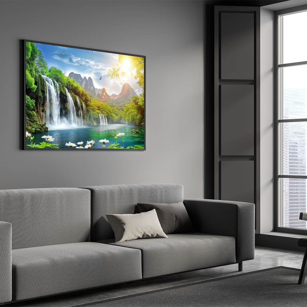- Rich, vibrant colors and intricate details bring this lush waterfall landscape to life, ideal for adding a touch of nature's serenity to your home.