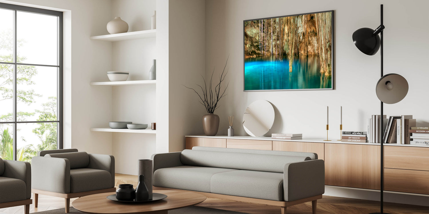 - Perfect for home decor, offering a stunning view of Yucatan’s cenotes and nature photography.